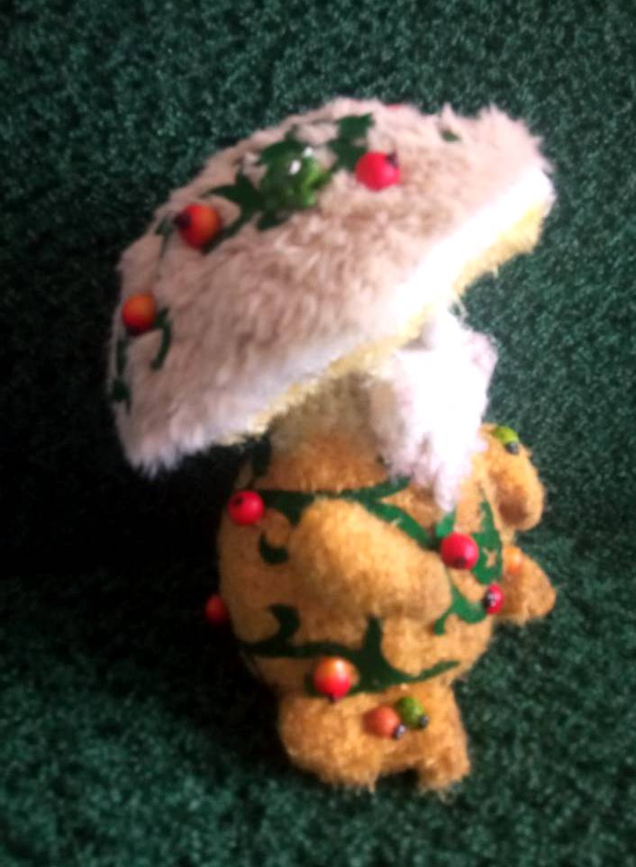 украшен поталью, бисером, пайетками, раскрашен пастелью, "жидким золотом" и "жидким перламутром"