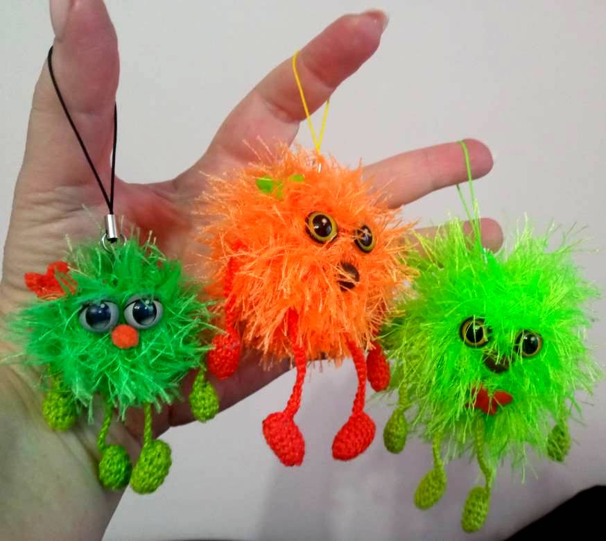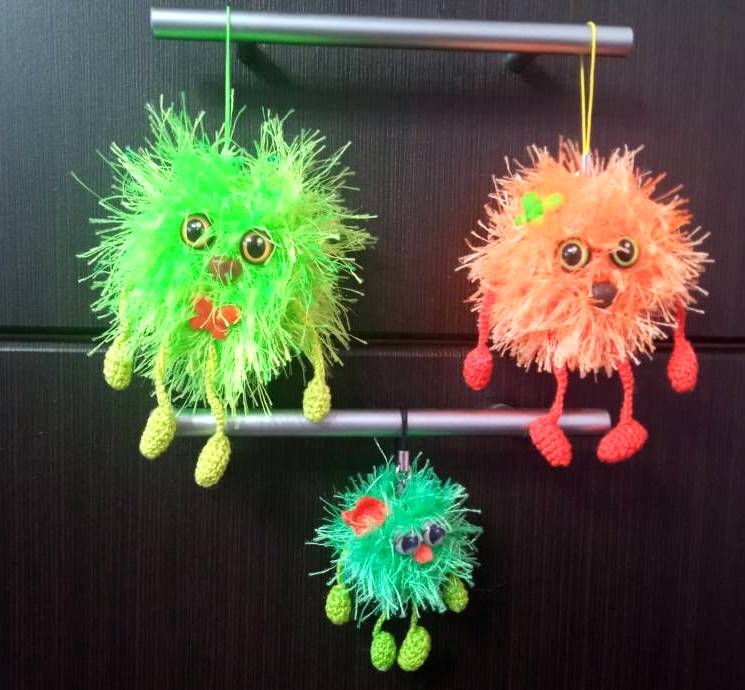 А это пушистые шарушечки, связанные на скорую руку (срочно нужны были маленькие подарочки)