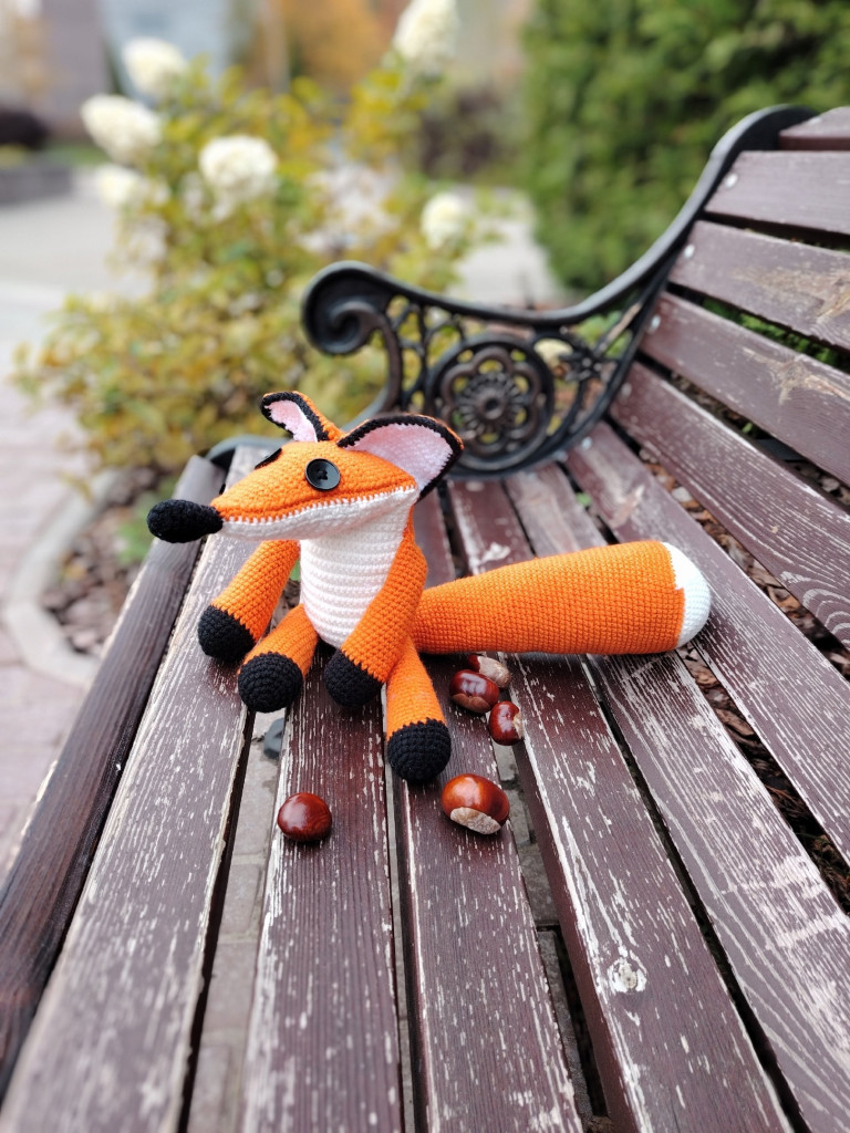 Хитрый лис с подарком. Связан по МК Марины Трескиной
