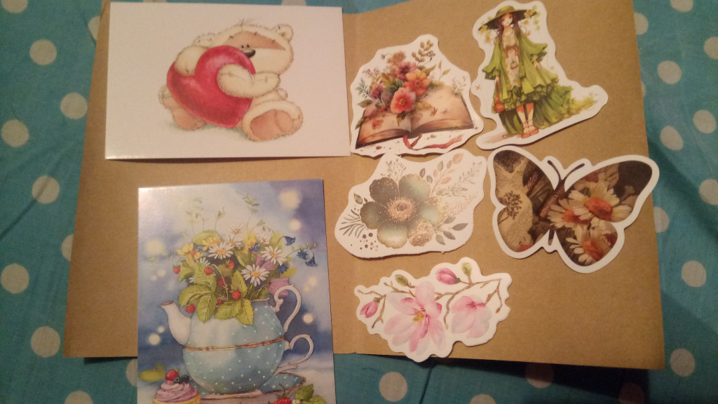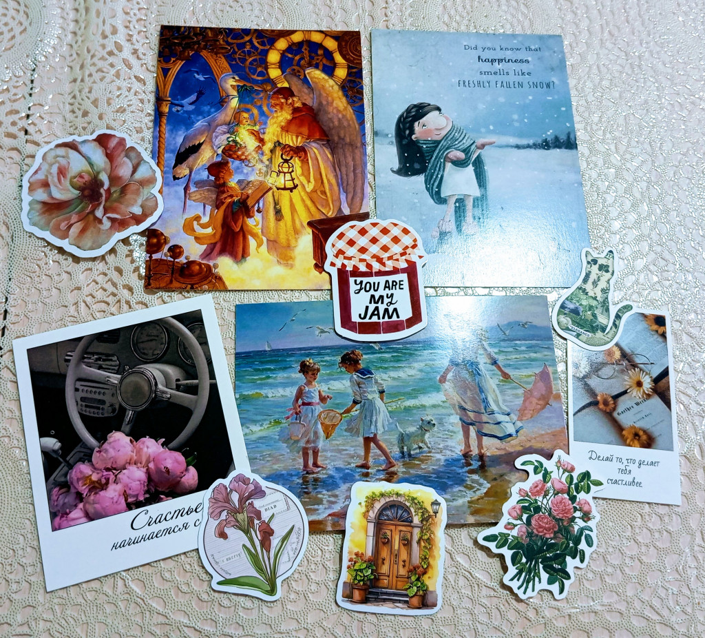 Девочки, привет! Я тоже получила конверт от Наташи @totoshka с красивыми открытками по игре "На одну букву": Л - любовь, К - кулинария, красотка. Ещё сюрпризные открытки, миниоткрыточки и наклеечки.