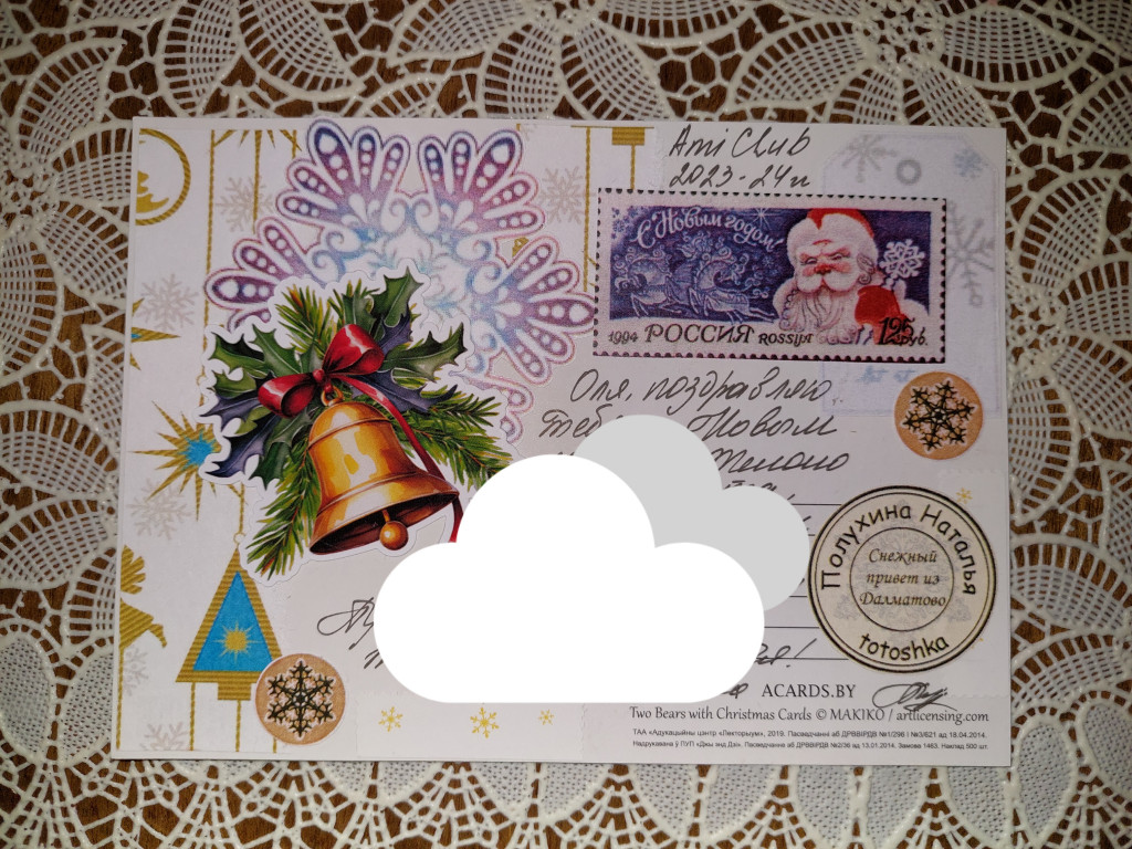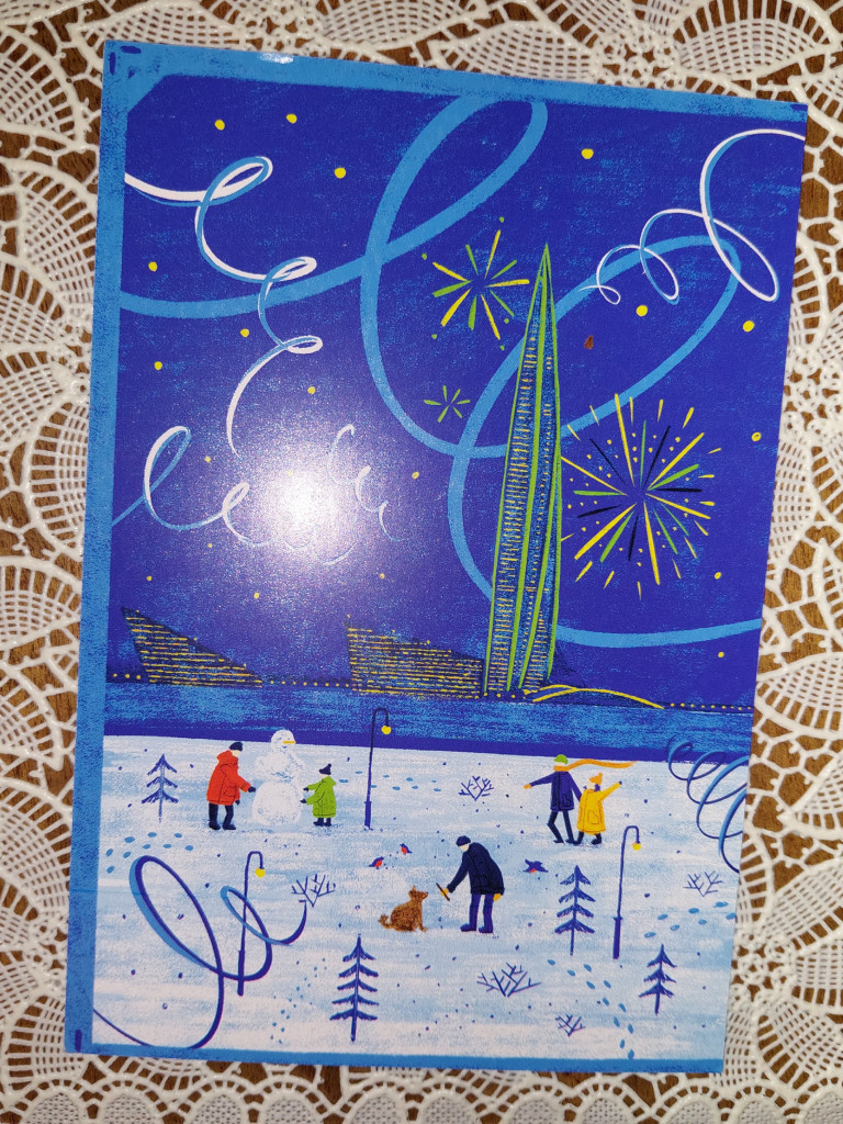 Девочки, ну вот и я зиму увидела - за окном -11 и даже снега немного насыпало, правда все после обильного дождика, на улице каток. А в почтовом ящике сюрприз - красивейшая открыточка от @Просто мама , глянула на штампик - отправлена из Санкт-Петербурга. Юля, большое спасибо! :reverans2: