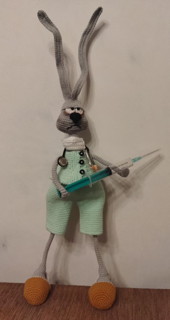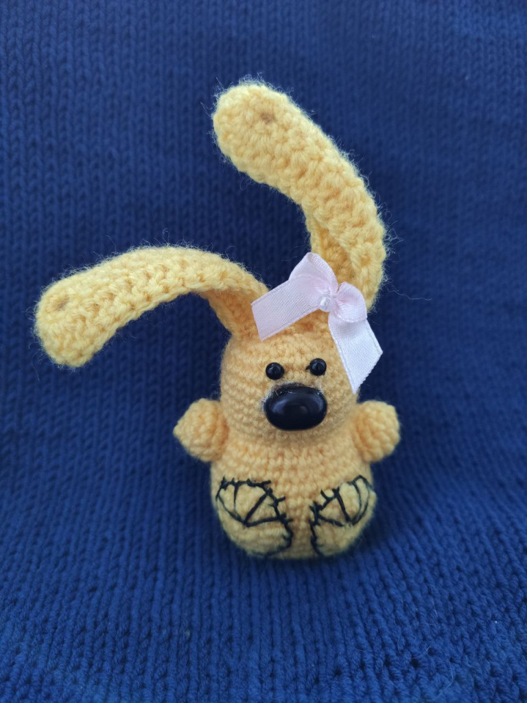 Моя первая игрушка спицами по МК Марии Никулиной «микрозайка»