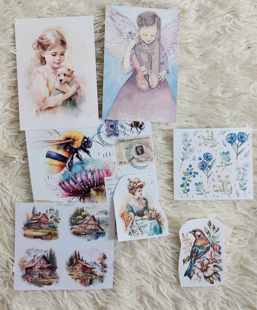 Открыточки, наклеечки, закладка и очаровательный конверт