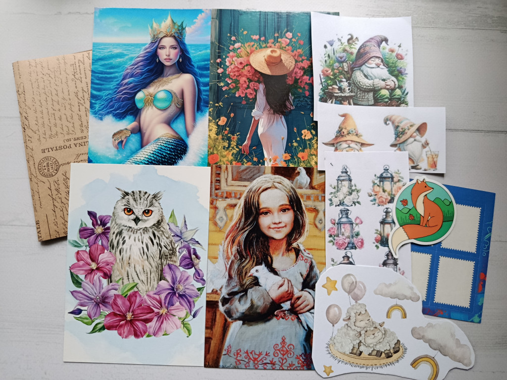 Второй от Жанны @nisana. А в нём открытки из лотереи и сюрпризные по обмену, а также подарочки. Всё очень красивое и чудесное. Жанночка, спасибо от всего сердца :kiss2: и особенно за открытку "Голубка", у меня ещё такой нет.