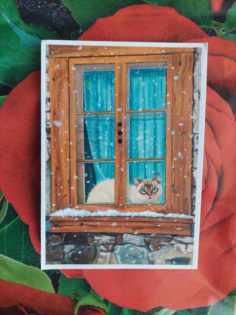 А какие стихи на обороте.))) Это, действительно, так, когда в душе непогода, греет пушистый котик. Хотя мой Васька бандит и кусака,))) покажу вам его.