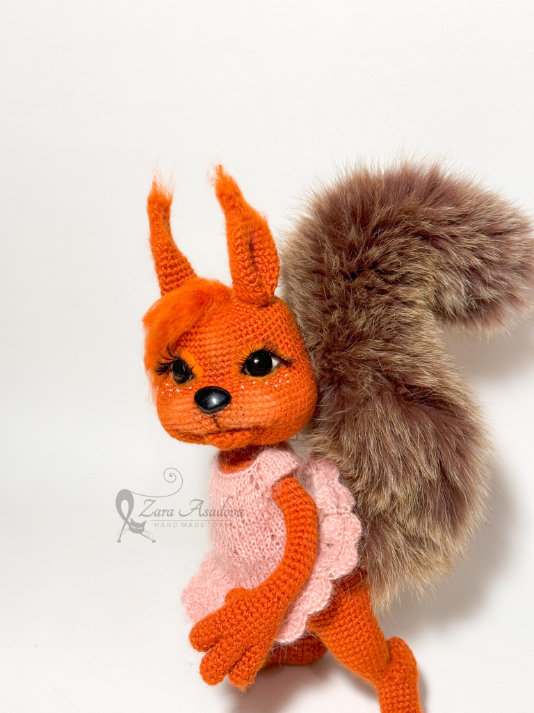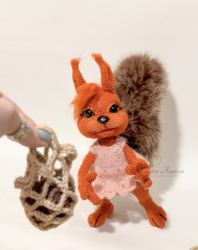 Бельчонок по МК Оксаны Берейшик . Рост 6 см сидя, без учета ушек. С ушками и стоя - 8 см.