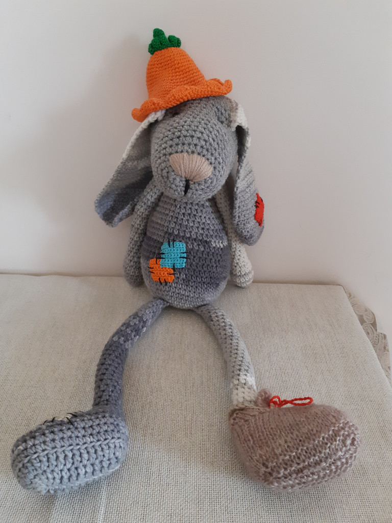 Заяц Виктор. Связан из минка, шплинтовое крепление конечностей, ушки армированы, носик из фимо. Ростиком с ушками 38 см, без ушек 26 см. МК @Наталья Зрожевская Натусик, спасибо!