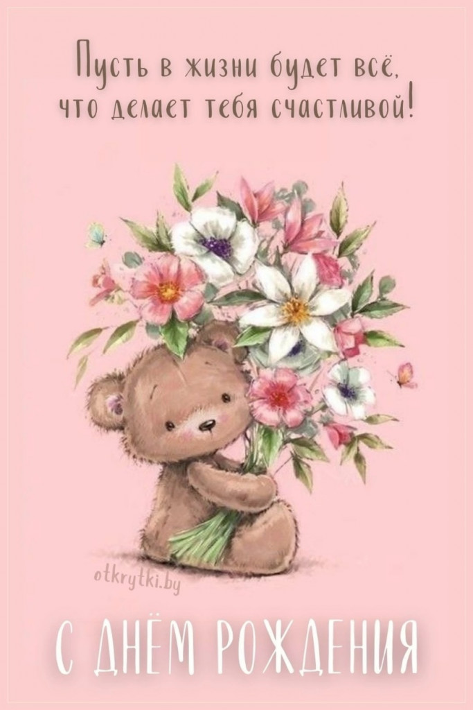Еще была открытка ко дню рождения с целой корзиной цветов!