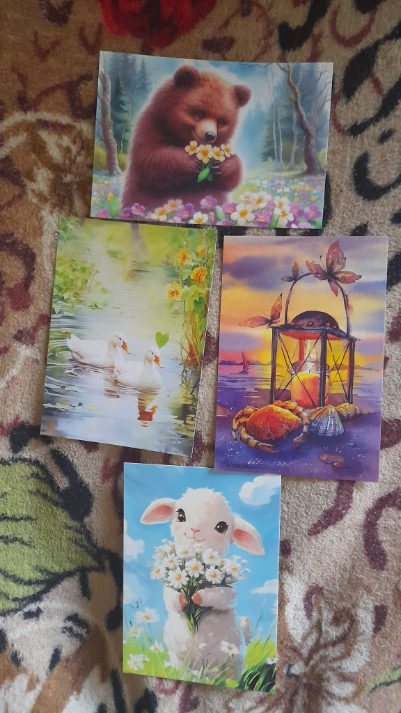 От Оли @lelyoka72 пришёл ковертик с открытками с игры На последнюю букву : Радость, Краб, Идилия, Овечка