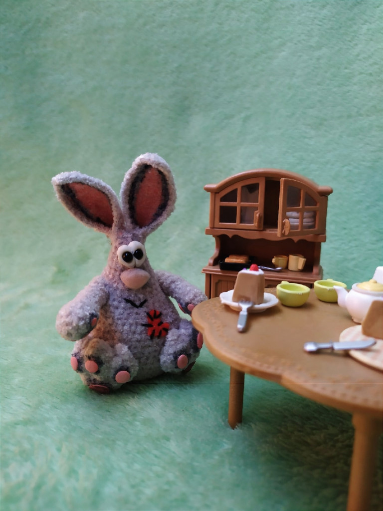 А это зайка, мк на которого я хотела создать. Мк так и не вышел, но эта прелесть живёт у меня. Люблю его🥰