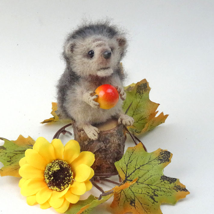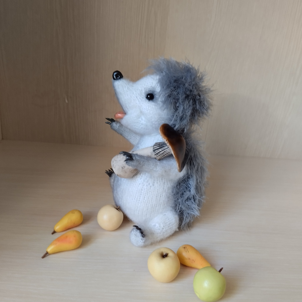 Ёжик Шуршик, авторская работа. Игрушка каркасная, вяжется частично на лицо (лапки), частично наизнанку (голова, туловище). Пришивных деталей нет, все детали ввязываются. Ростиком ёжик получился 8,5 см. Для игрушки использовалась мохерсодержащая пряжа в 100 г 500 м.