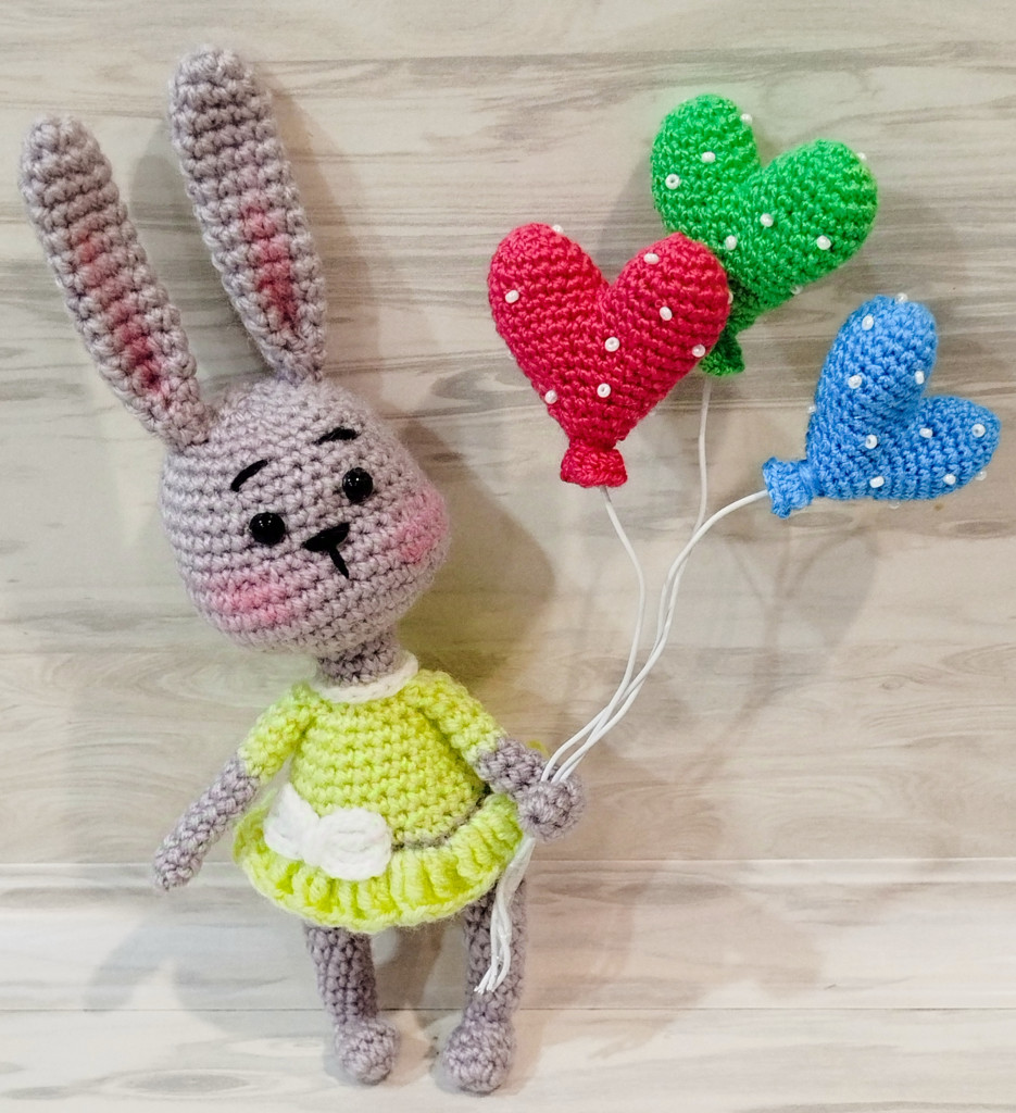Зайка с шариками, автор Тамара Шаклунова, с ушками 19 см, шарики 3,5 см