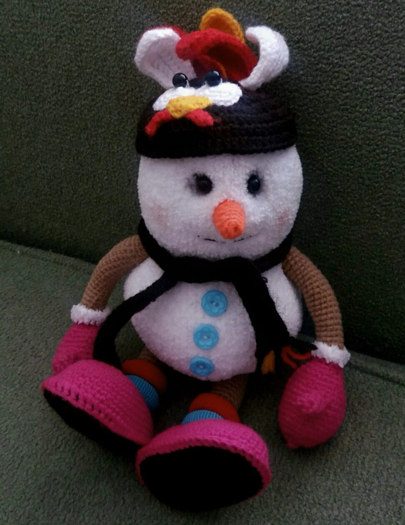 Подготовка к НГ идет полным ходом:) Снежок. Ростиком 12 см, шплинтовое крепление, пряжа Минк, крючок кловер амур 1.5, носик и пяточки из холодного фарфора. МК Марии Боровой.