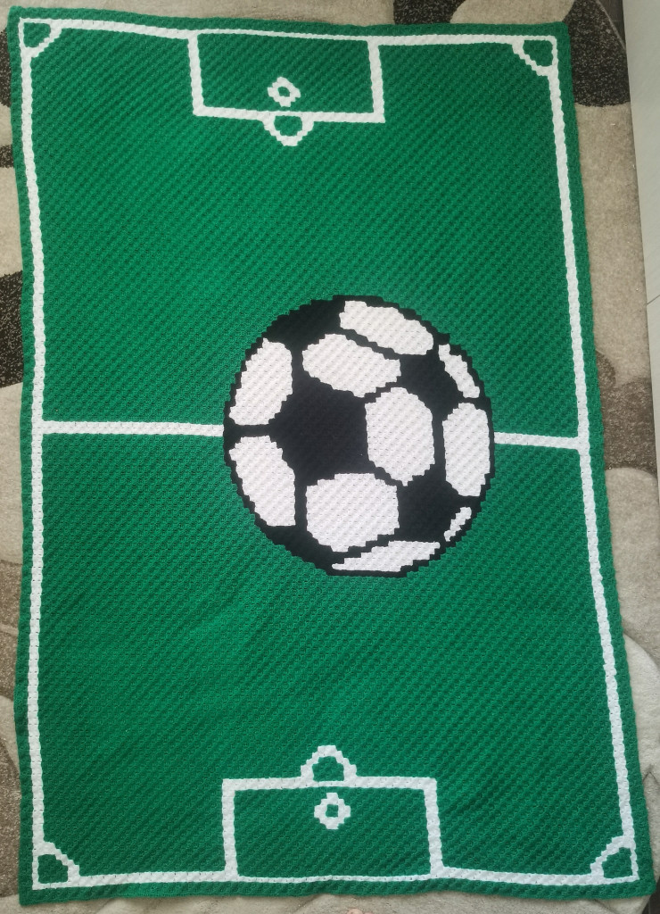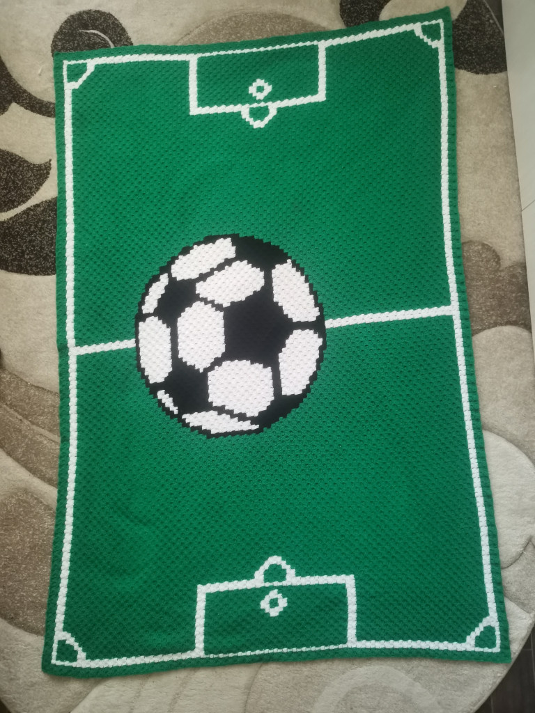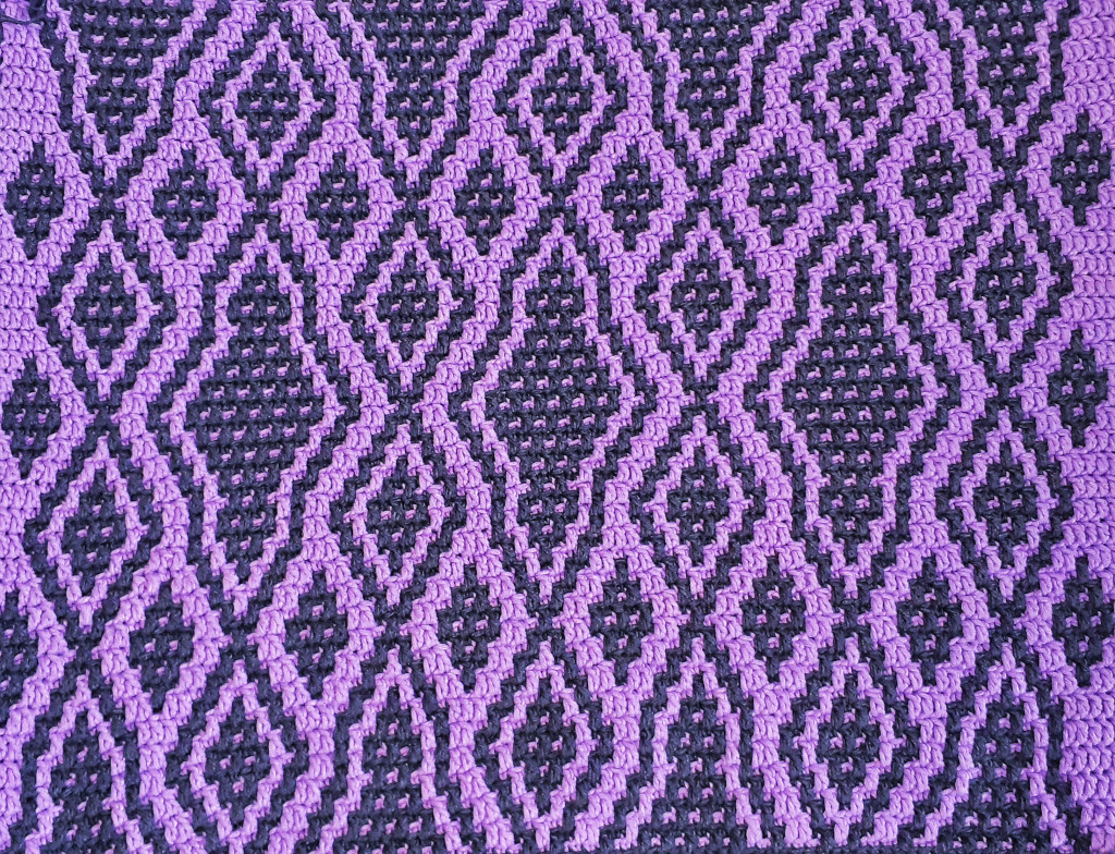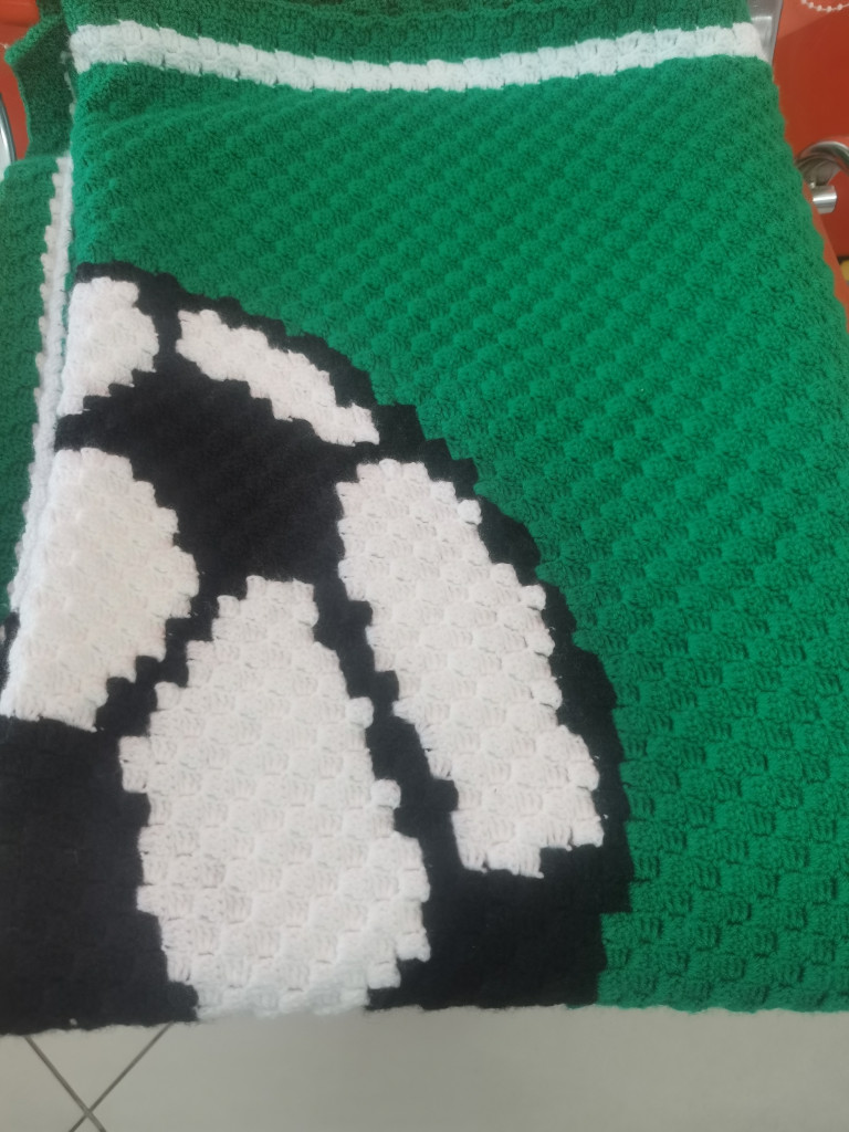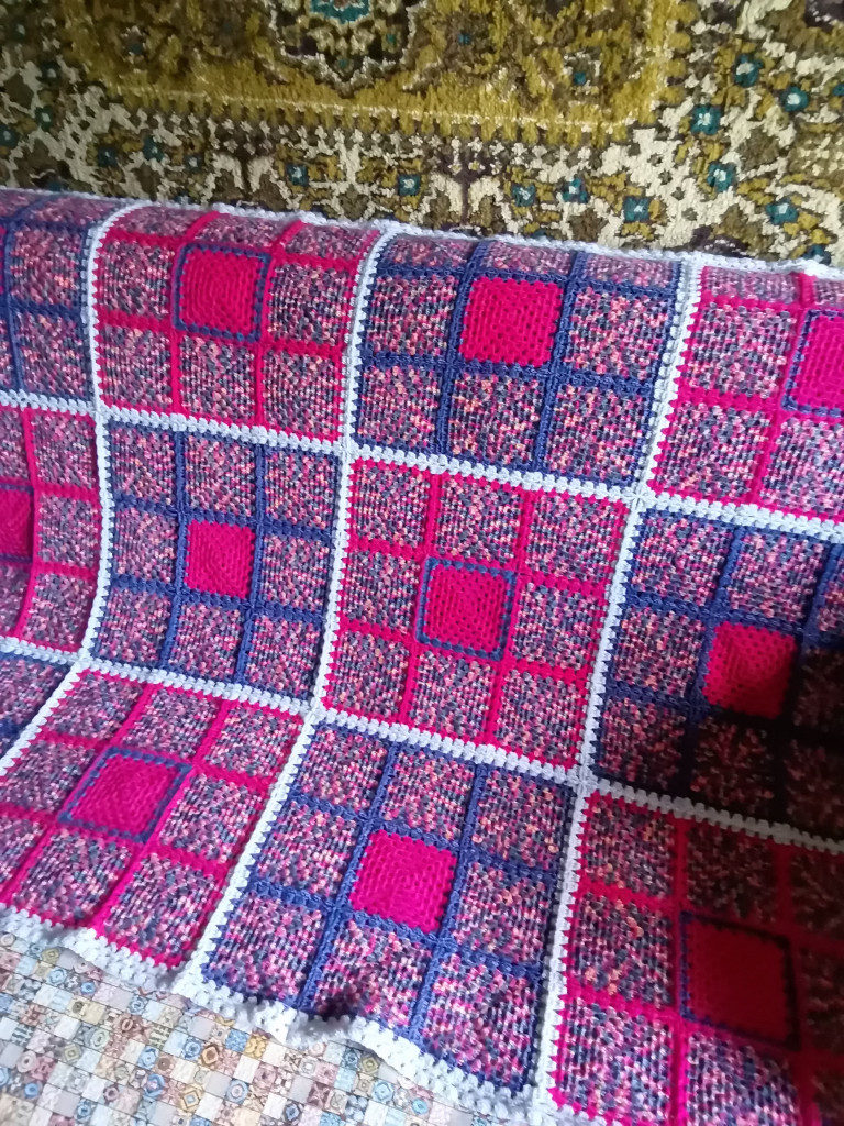 Двусторонний плед связан крючком в технике с2с, размер получился 105х153