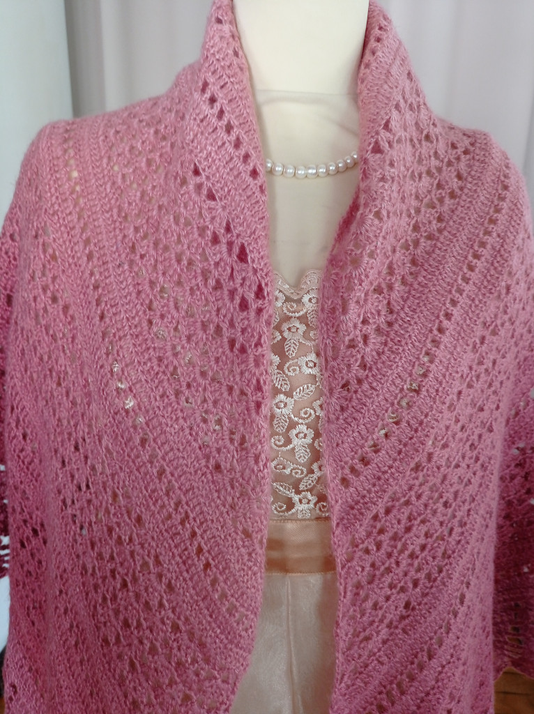 Эту шаль обычно вяжут из белой пряжи, а мне захотелось поиграть с Омбре Батик.