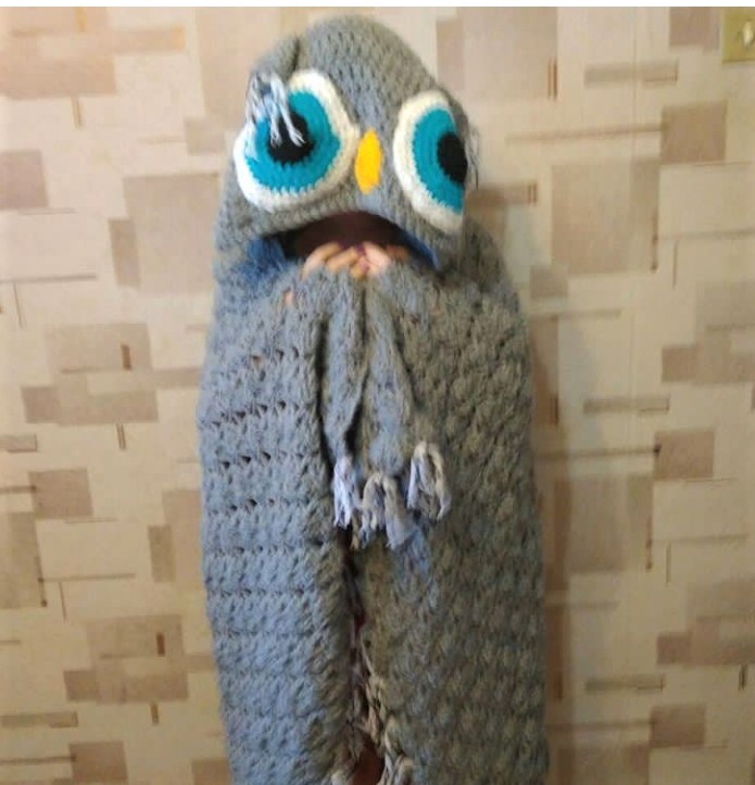 Пледик Сова) Тяжелый и теплый)) постоянно мерзнущая дочь его очень любит))) (к сожалению фото получше не сохранилось)