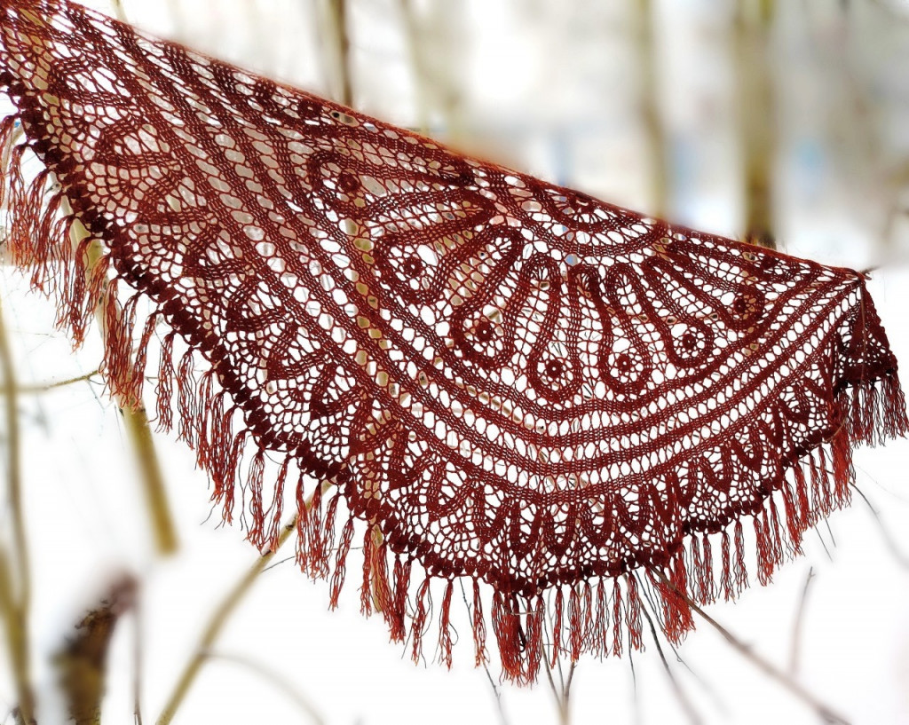Шаль связана крючком в технике брюггское кружево. Авторская работа