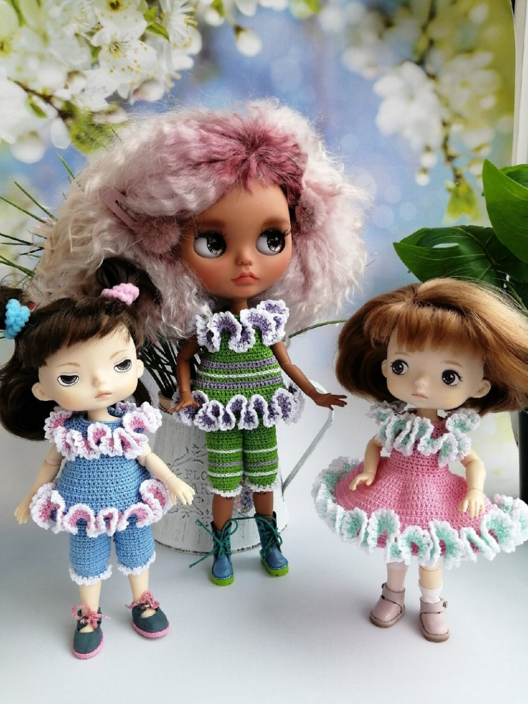 Мои кукляшки носят не только шитые вещички, но и вязаные))