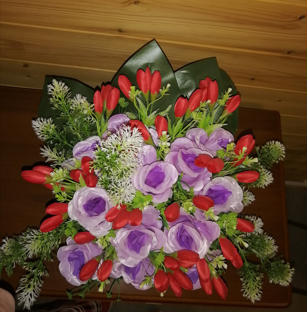Помимо вязания собирала из искусственных цветов композиции для декора дома.