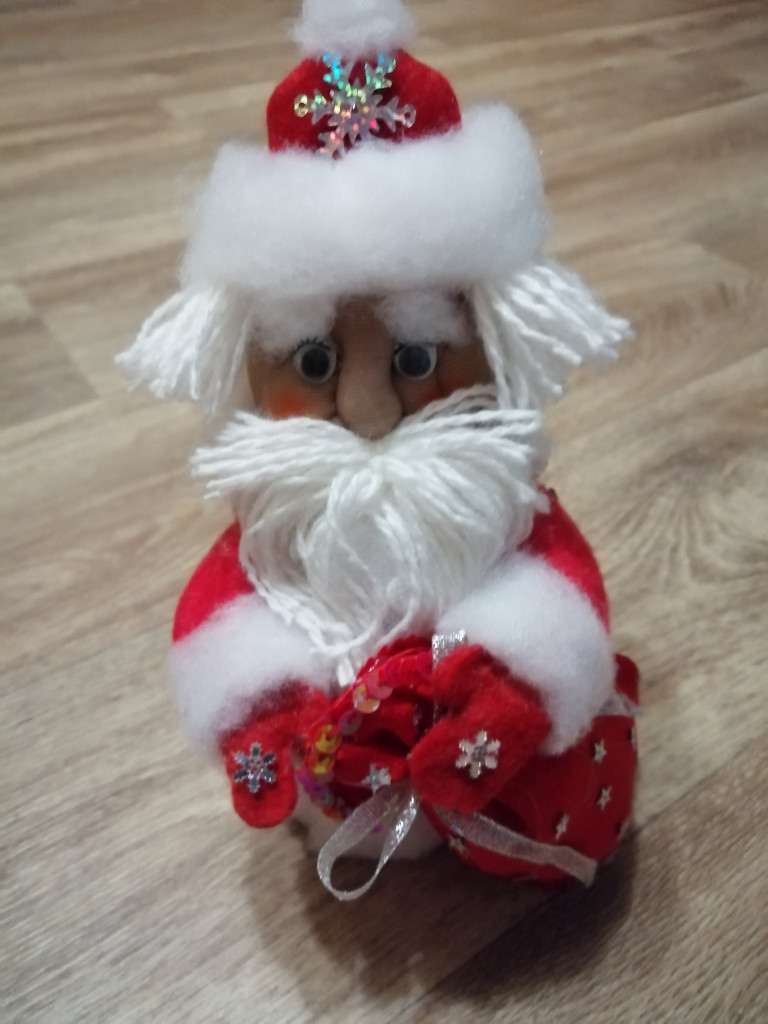 А это наш Дед Мороз и Снегурочка из ваты, у Снегурочки голову переделала, но фотки нет, высота около 30см