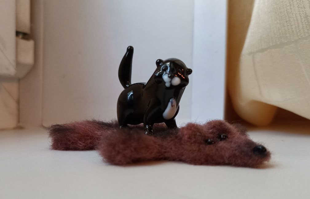 Размер домика 17,5х15х16,5 см., парочка фотографий для понимания размера мебели Медвежью шкуру облюбовал Бегемот