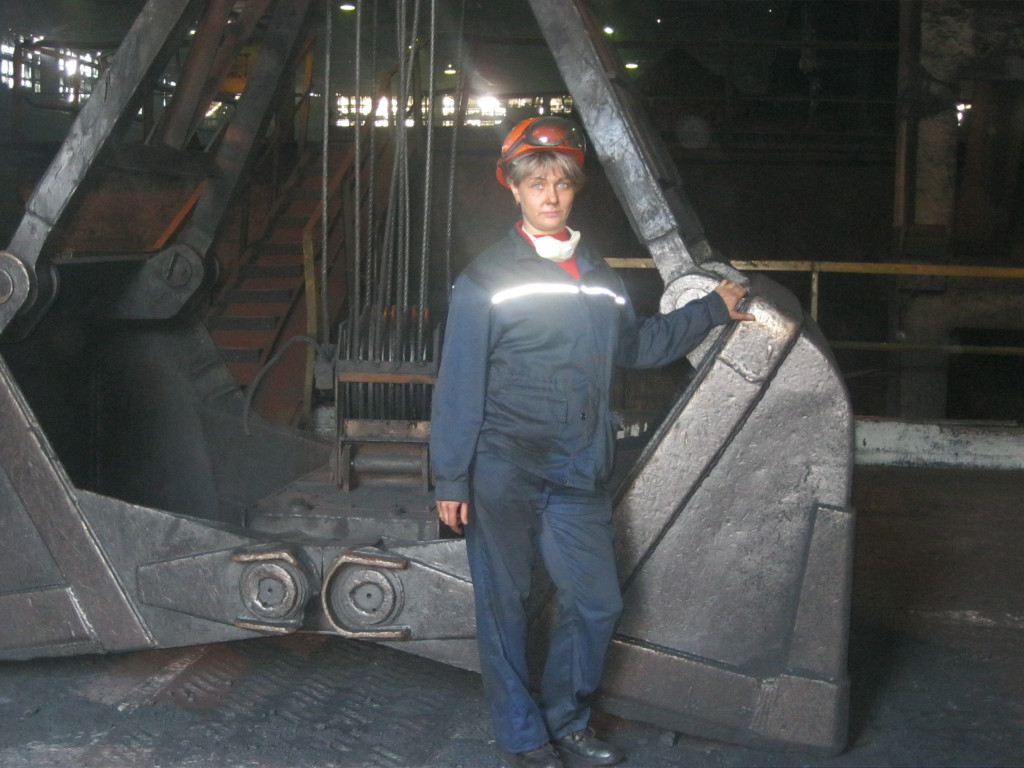 насчёт старая конечно шучу, я ещё в полном расцвете. Отработала я больше двадцати лет, сначала на фанерном производстве примерно 14 лет это я в кабине крана, молоденькая ещё. Потом ушла на алюминиевый завод там шесть лет отработала вид с кабины, какая разница с фанерным заводом там было чистенько, светло, а тут как в подземелье а это я возле грейфера. Мы им вагоны с коксом разгружали. Из за чего я полюбила эту профессию даже не знаю, меня ещё в детстве краны привлекали. Хотя я не сразу пошла на них работать, сначала после школы отучилась на продавца, да-да тогда на них ещё учили. Так что я продавец с дипломом