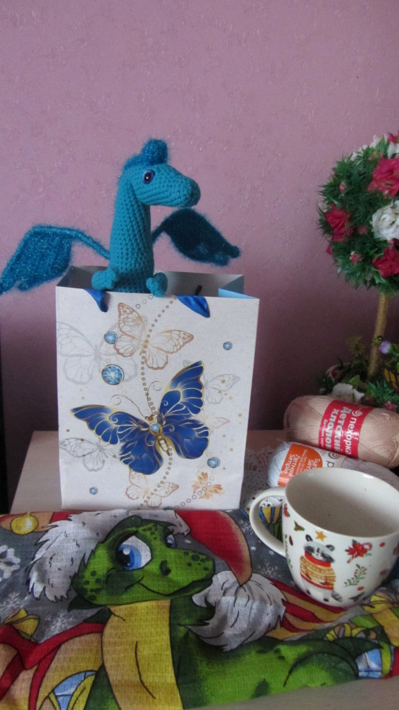 Драконяшеское полотеньчико , уютный бокальчик, другого слова к нему я просто подобрать не смогла) АА вкусняшки!! Все , что я люблю! Обалденная мишура на проволоке, И.. сумочка, а там.. МОЙ красавчик!