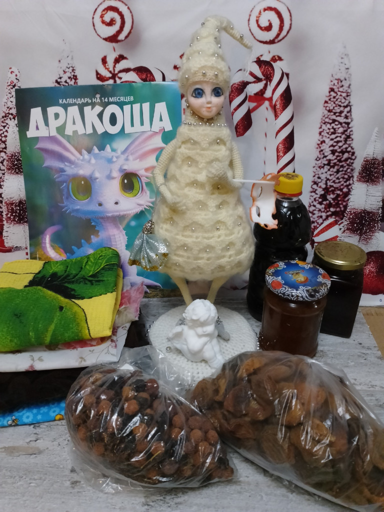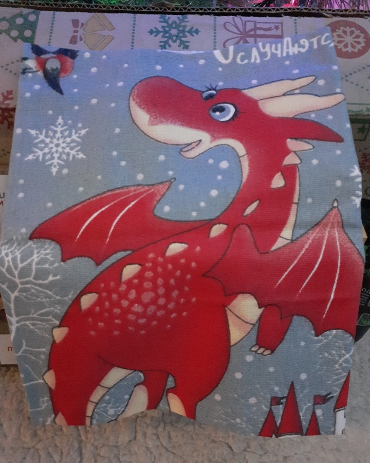 Брошь-дракончик Пазл и приправы Крем для рук Шоколад Формочки Полотенец с дракошкой Открыточка с пожеланиями Дорогая Оленька,спасибо тебе огромное что исполнила мою мечту!Я несказанно счастлива!Полночи разглядывала,щупала их.Они пропитаны по моему пва.Прям настоящие ёлочные игрушки.Заглядываюсь на ватные,сама не решаюсь пробовать их делать,но эти прям миниатюрные похожи даже на ватные,особенно ангелочек и дедулька.С Новым годом тебя и твою семью,здоровья твоим золотым ручкам и всех благ!