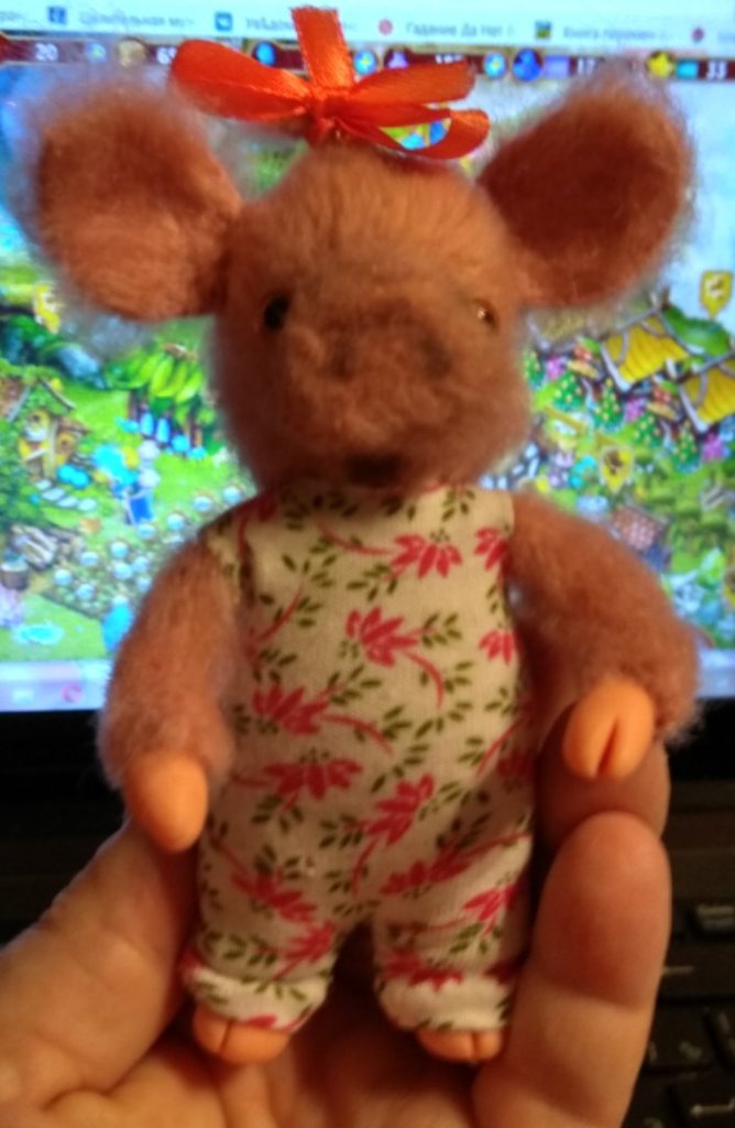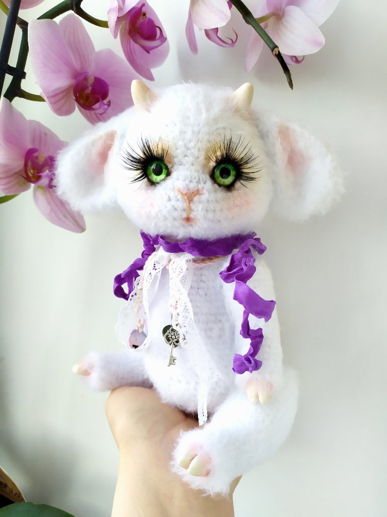 Размер игрушки 10 см. Связан из акриловой пряжи, наполнен синтепоном, декоративная отделка из фактурной пряжи. Пластиковые глазки на безопасном креплении.