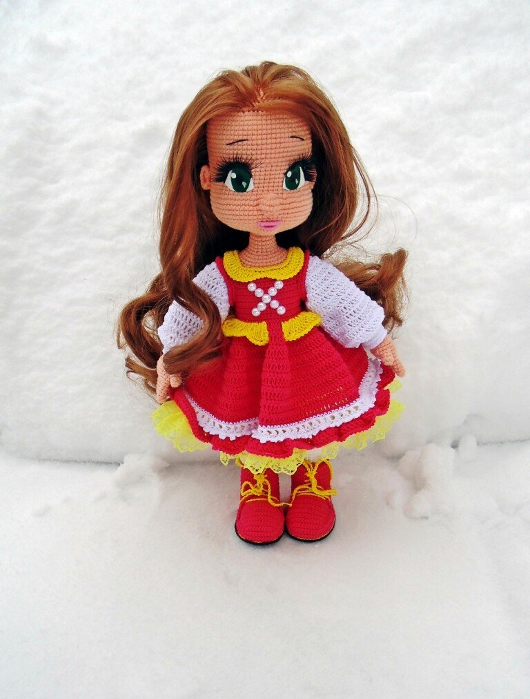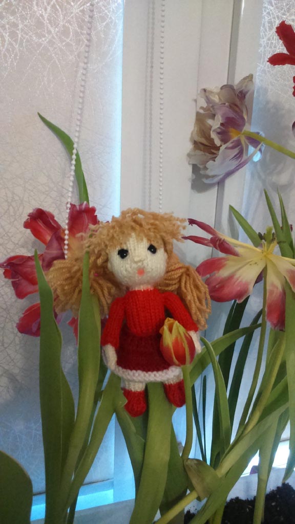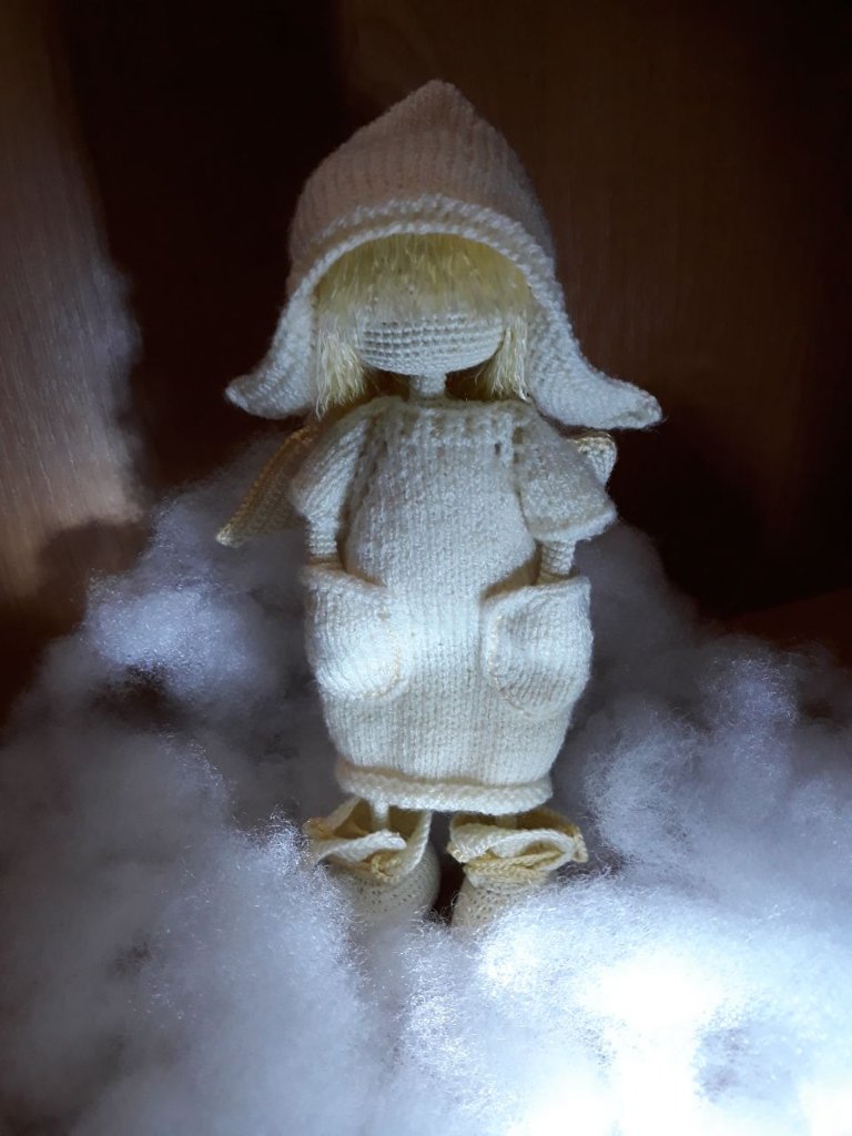 Куколки только учусь вязать, эту малышку связала по МК Татьяны Сидоренко. Вязать умею только спицами. крючком училась но не очень получается.