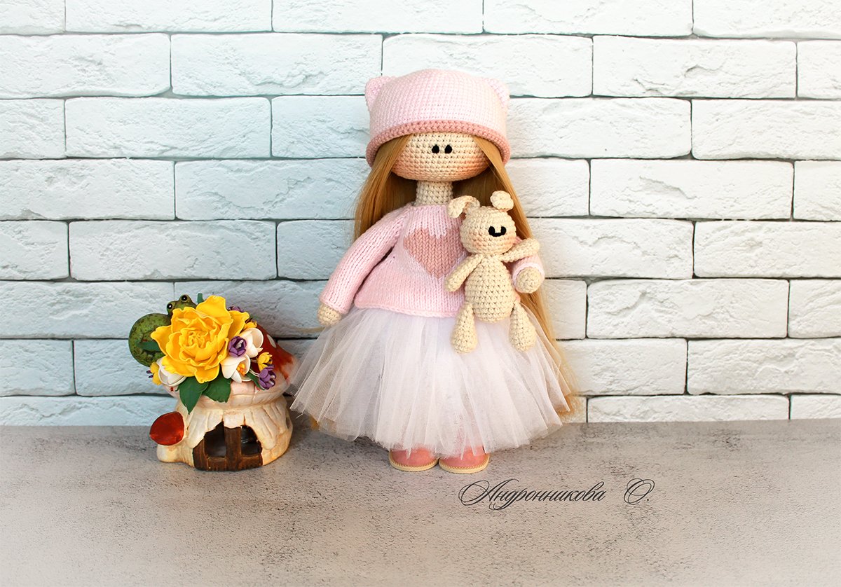 А это моя любимая работа. Связана для любимой подруги, которая живёт очень далеко от меня. Кукла связана с любовью.