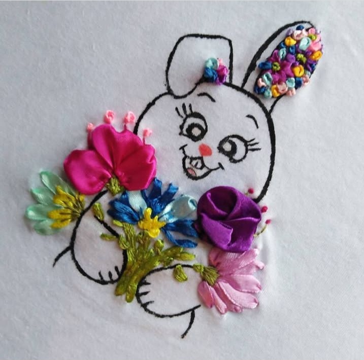Моя вышивка лентами)) Зайка был вышит на футболке дочи