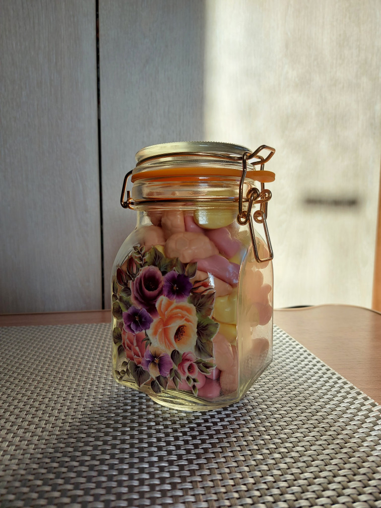 А у меня полимерная глина. это декор на крышке баночки под сыпучие продукты