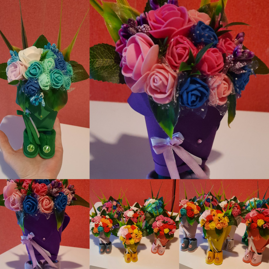 На 8 марта делала такие букетики - топотушки из фоамирана
