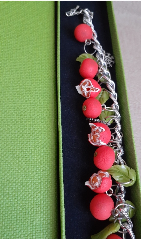 А это браслет с мандаринками,просто произведение искусства.Я всегда восхищаюсь такой работой!