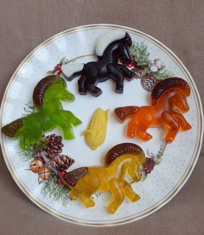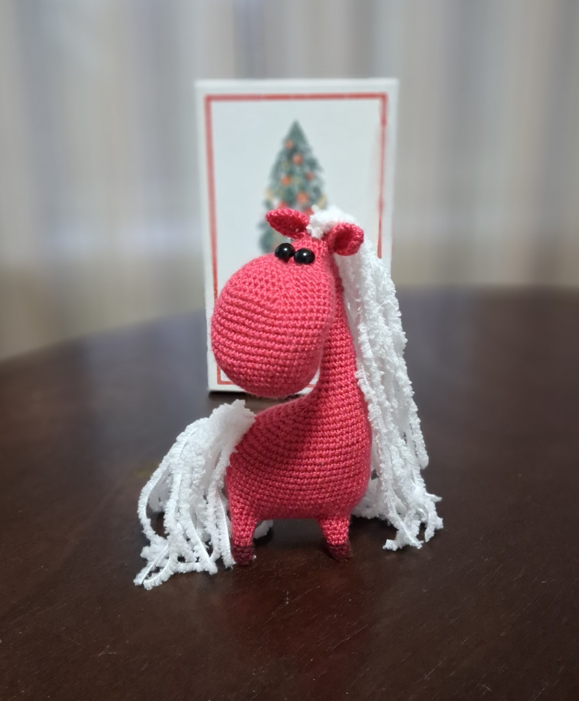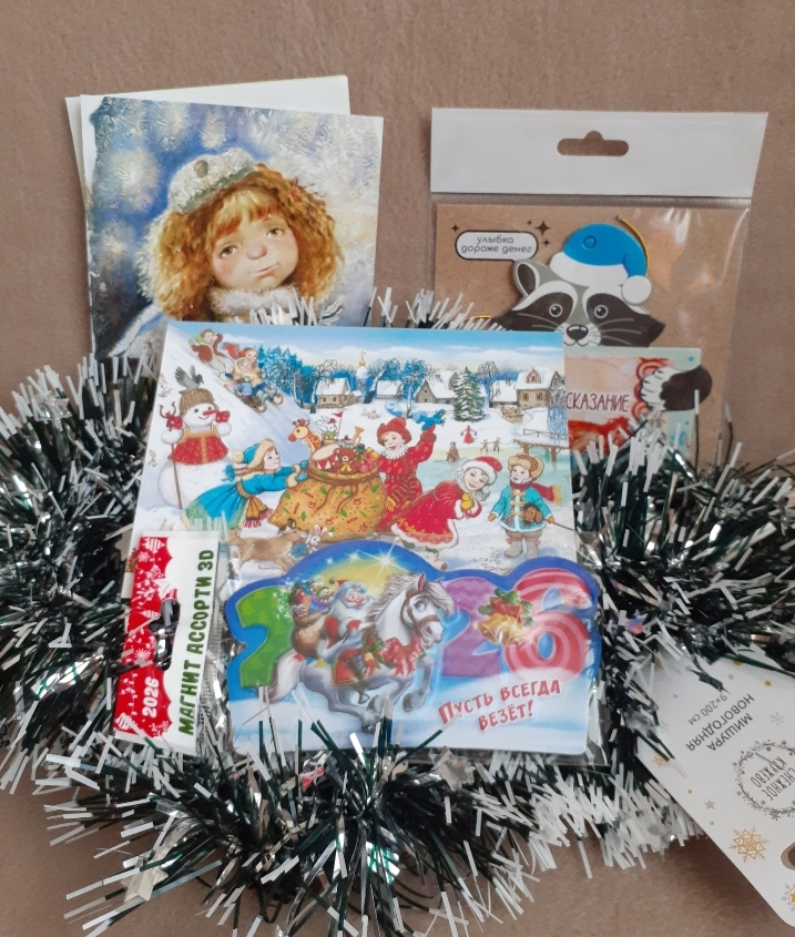 Неожиданно быстро пришла посылочка. Ну правильно, лошадка- то быстро домчит. Приехала ко мне Огненная лошадка в волшебной шляпе с грибочком! С прекрасной новогодней феечкой и подарками. Привезли подарков для красоты, для рукоделия и сладкий целый подарок. Пряжа, блестящая ленточка, бусины, подвесочки, суставчики, холофайбер. Блеск сразу дочь забрала, феечку сразу на дверцу шкафа повесим, чтобы блестела и радовала. Лошадка с тонюсенькими ручками- ножками, плотненькая такая - вдохновит учиться так ровненько вязать. А приехали они из Сочи. А кто у нас феечка? Память у меня как у рыбки, не вспомнила.
