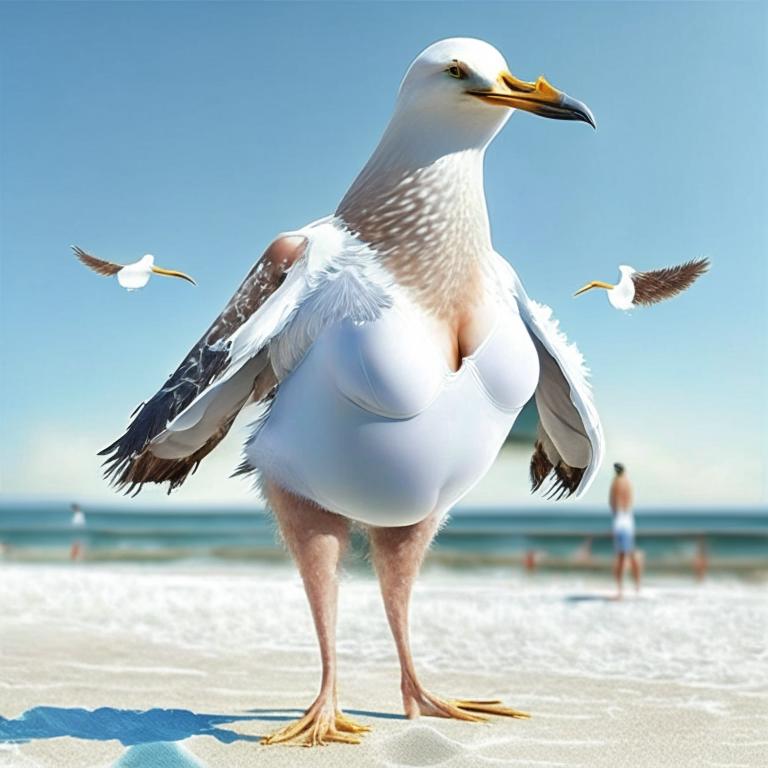 У меня рисуется просто чайка. Без купальника. Но со взглядом, полным превосходства. Мол, я то на пляже, а ты, лошара.. Рисуешь море в нейросети..Taticrimea писал(а): ↑05 июн 2023 22:33
