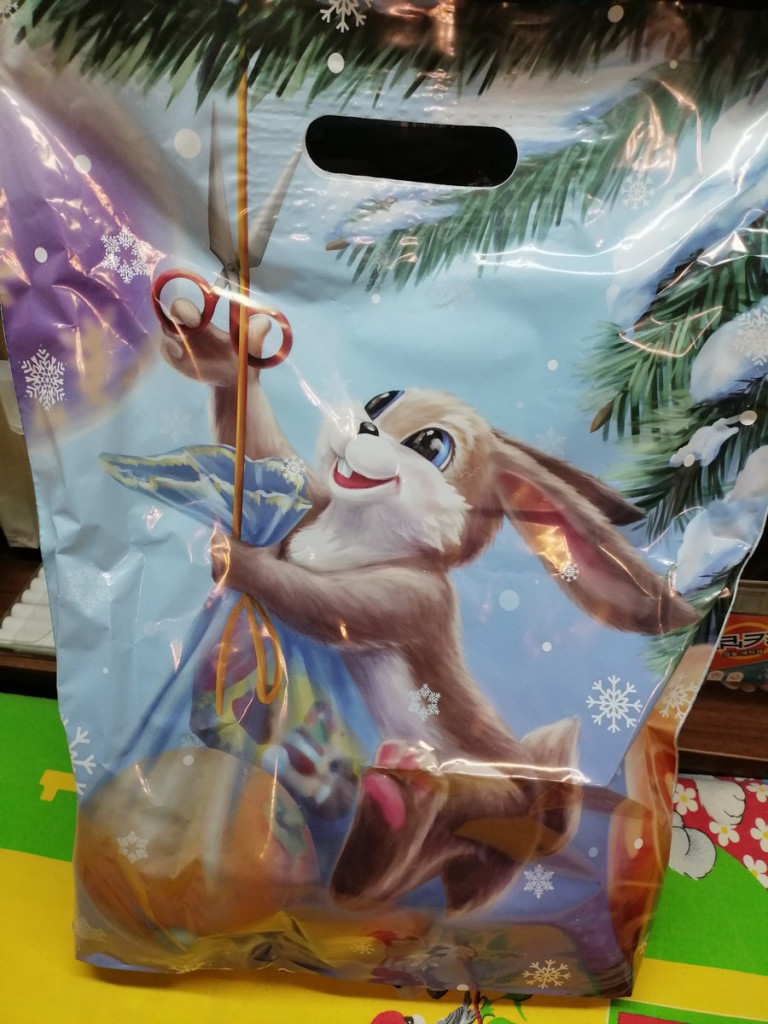 Зайца сразу после разбора посылки отдала детям. Но забрал его сын) дочь увидела остальное богатство и как истинная