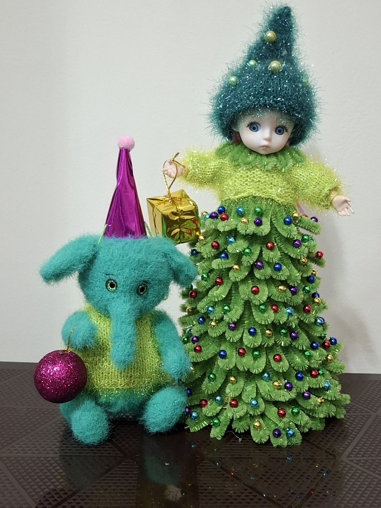 А вот и она, мечта :homyak: :homyak: :homyak: - Ёлочка с личиком, настоящая праздничная красавица. А приехала она не одна, а с другом слоненком..