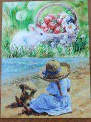 К нам прилетели открытки по обмену. Захару пришли открытка с мастифом и наклейки от Татьяны Почтискрыльями. Сыну понравились. А мне понравилось стихотворение. И от ЖениВолодиной открытка с мальчиком и собакой. И оборот открытки красиво оформлен наклейками. На открытке шикарная марка А.А.Любавина "Девочка и город". Неожиданное пополнение моей маленькой коллекции марок. Женя, сын передал вам, что у нас 6 собак. В плане верных пушистых друзей мы богаты, а для полного счастья у нас две кошки Мышка и Степанида. Мне пришла открытка от MilaN. Спасибо за добрые пожелания. Теперь я знаю, что Костроме есть памятник собаке. Девочки, спасибо за ваши добрые пожелания.