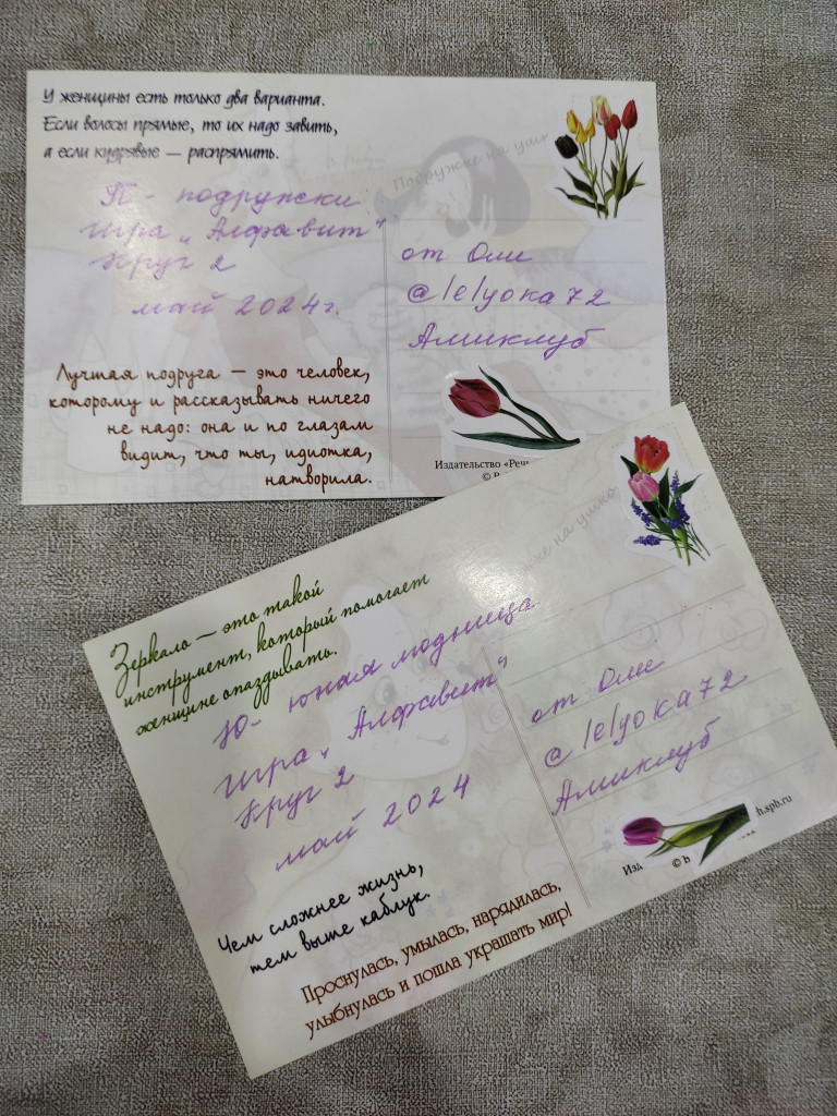А у меня очаровательный конверт от Оли @lelyoka72 !!! Такой яркий! И Алфавит: П- подружки, Ю - юная модница! А открытки какие красивые, из и подписывать то не надо - такие фразы суперские!
