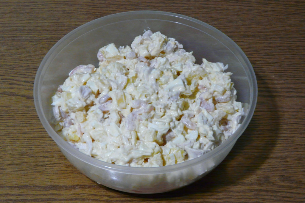 Получается примерно 1,5 кг салата. Я тут ради интереса посчитала - мои затраты 667руб.