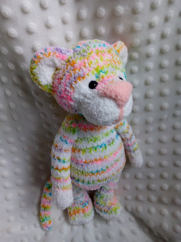 Акварелька- младший тигренок ростом 26 см связан в интенсиве с PolushkaBunny из пряжи Софти от Ализе в две нити спицами 3 мм, лапки на пластиковых суставах, глазки-пуговки