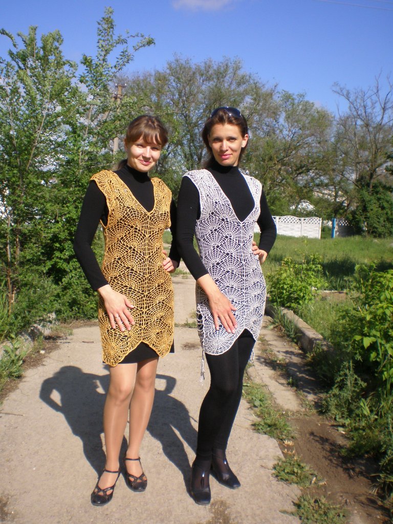 Вот такое платьишко я связала в первый раз для внучки. Причем до этого вязала только спицами. С крючком никак не могла подружиться.