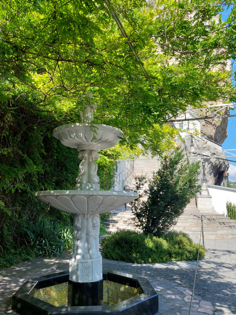 На территории монастырского сада расположены 3 фонтана с водой из горных крымских источников. Фонтан Здоровья, фонтан Красоты и фонтан Мудрости. Вода в каждом из них отличается по вкусу.