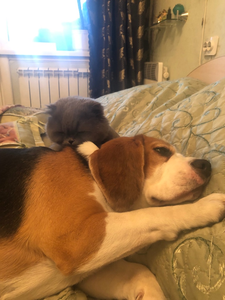 Обожаю собак и с удовольствием вяжу их с Татьяной Коротких. У меня живет бигль Хэппи - мой маленький охотник, моя подружайка. Ещё есть котейка. Майка - вислоухая длинношёрстая шотландка. Звери дружат.