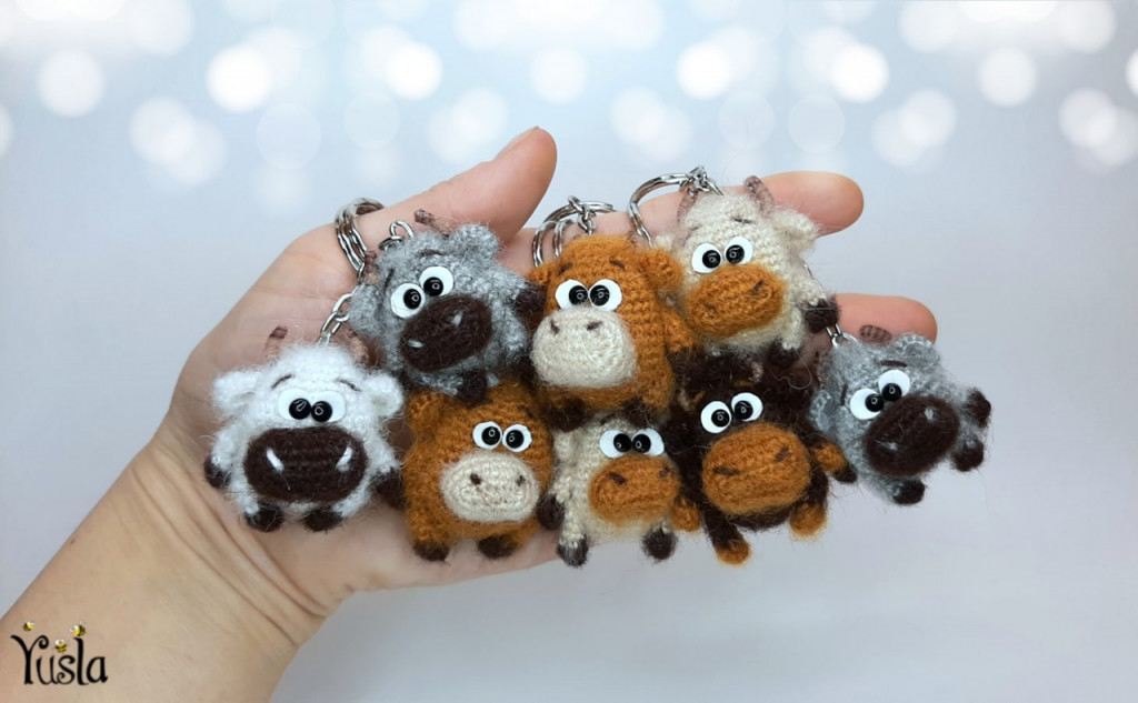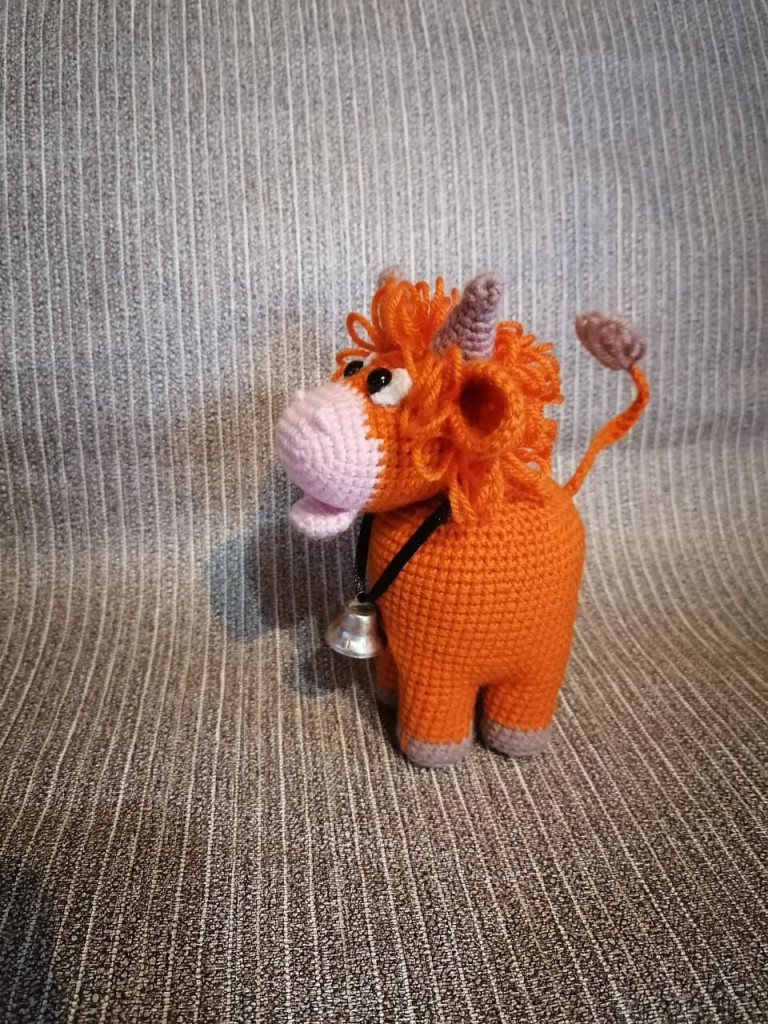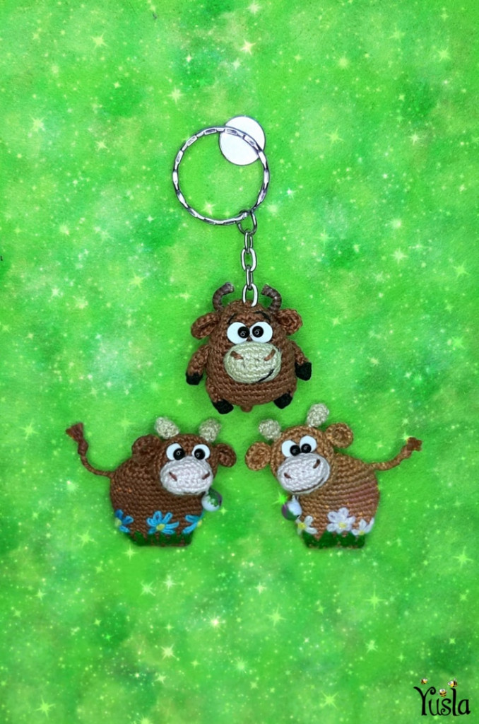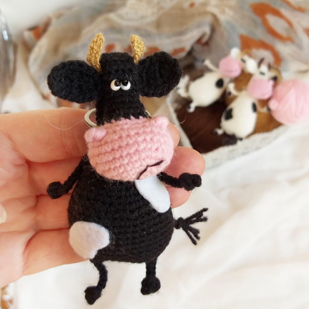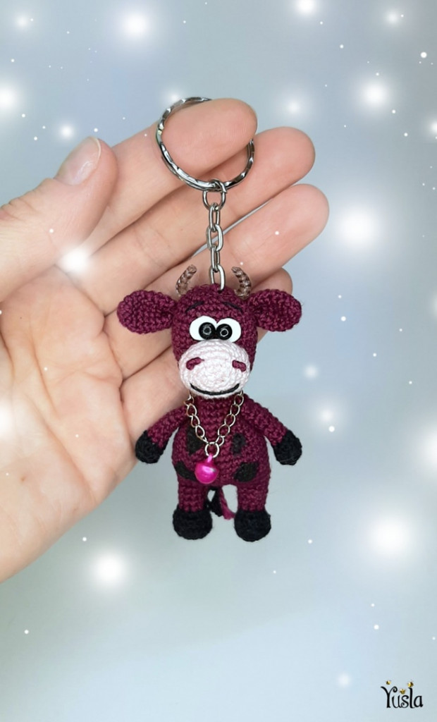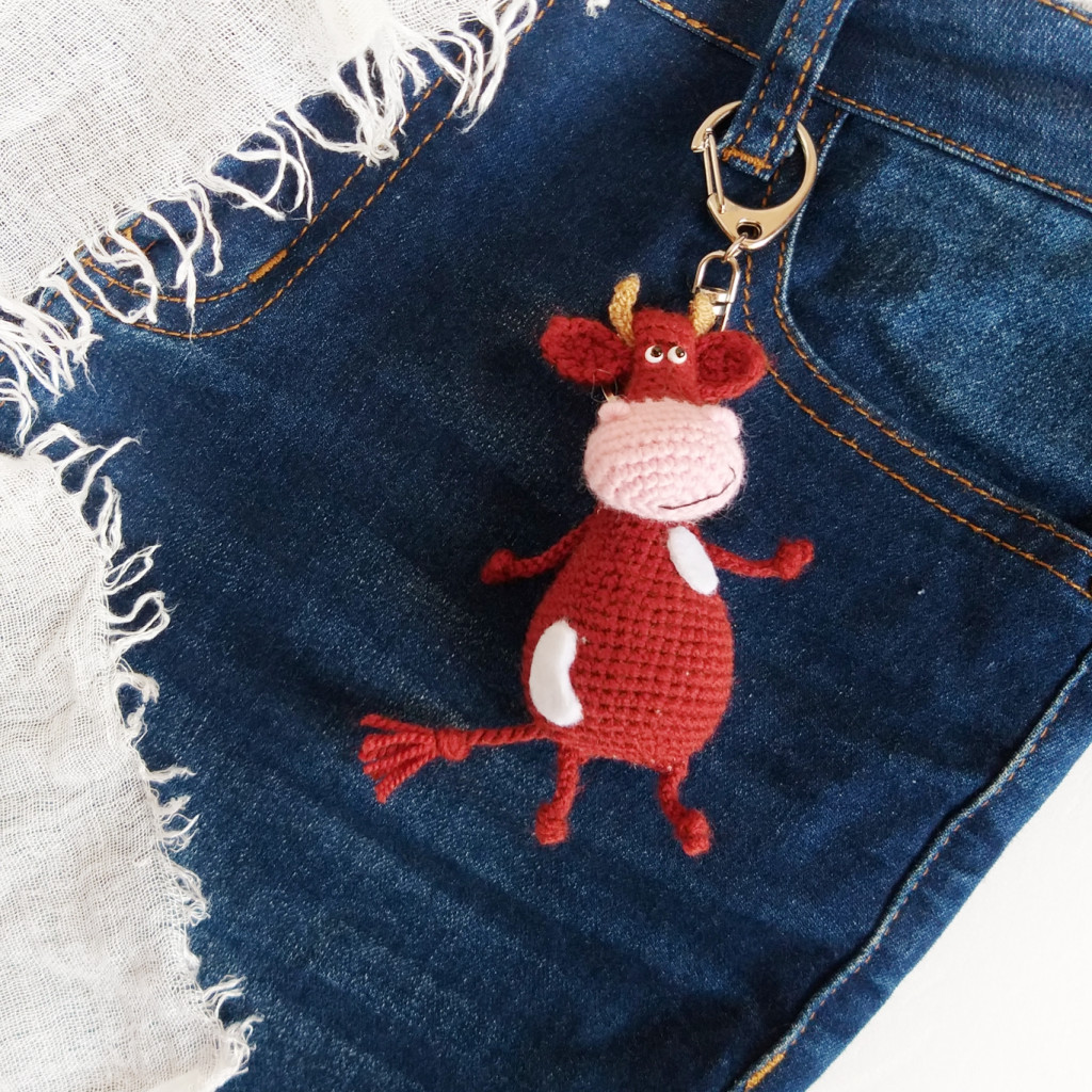 Бычок брелок.<br />Мой авторский МК<br />Размер около 10 см. Связан крючком.