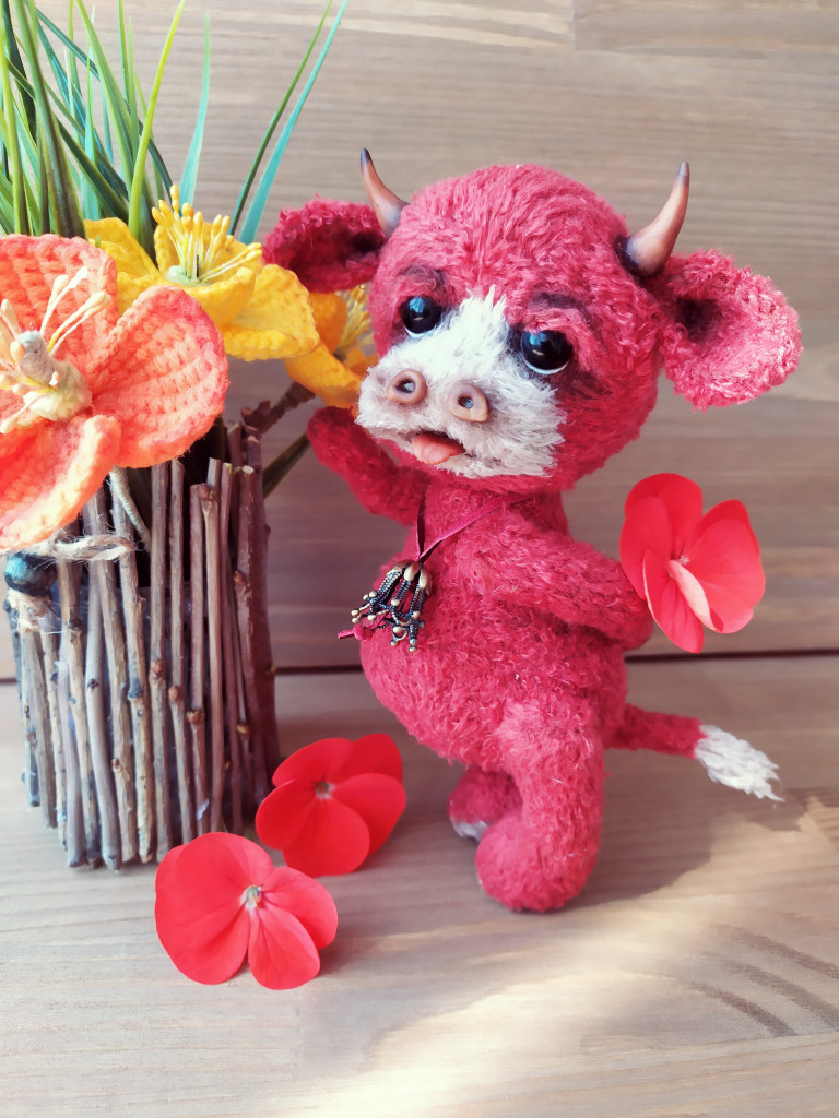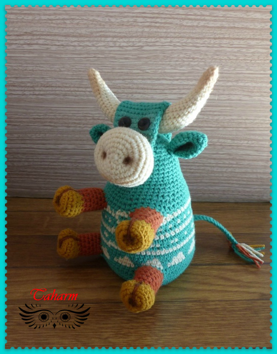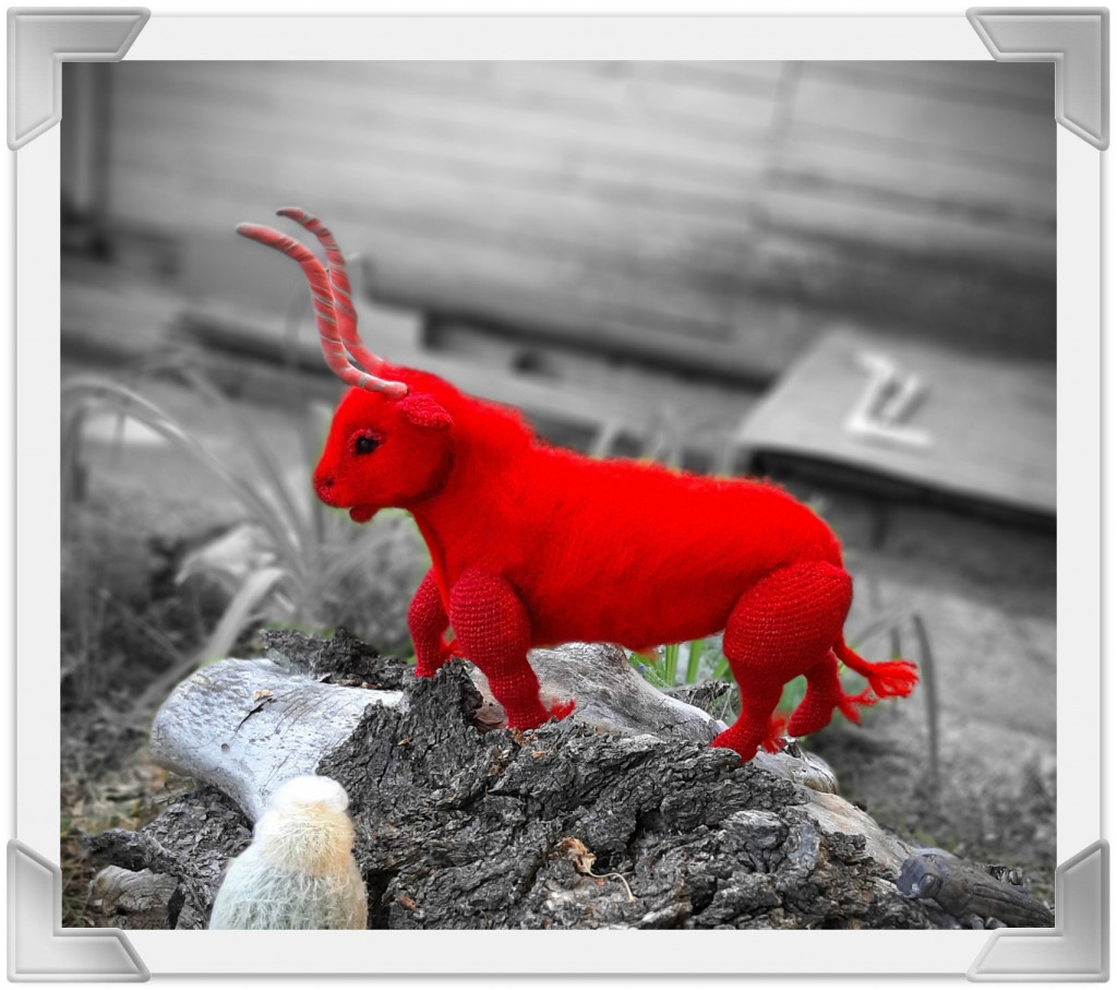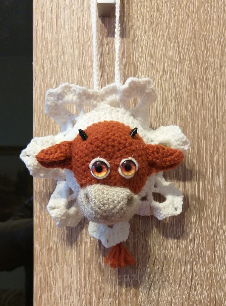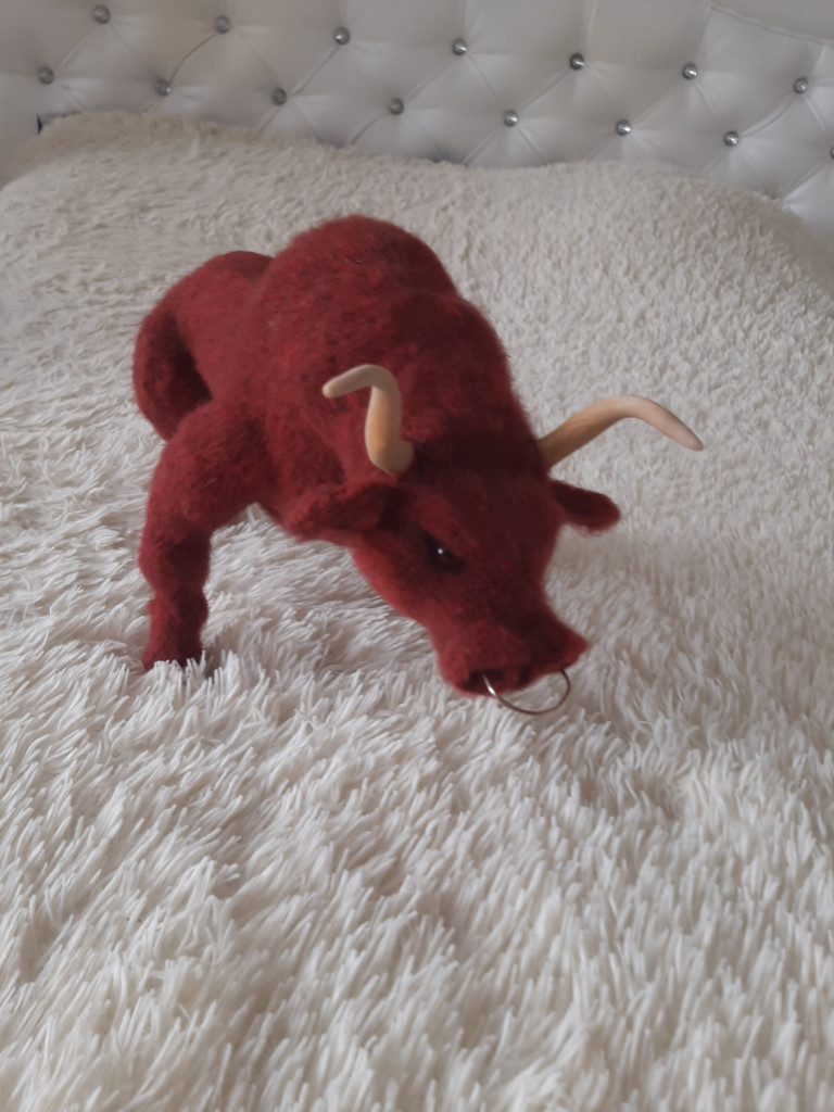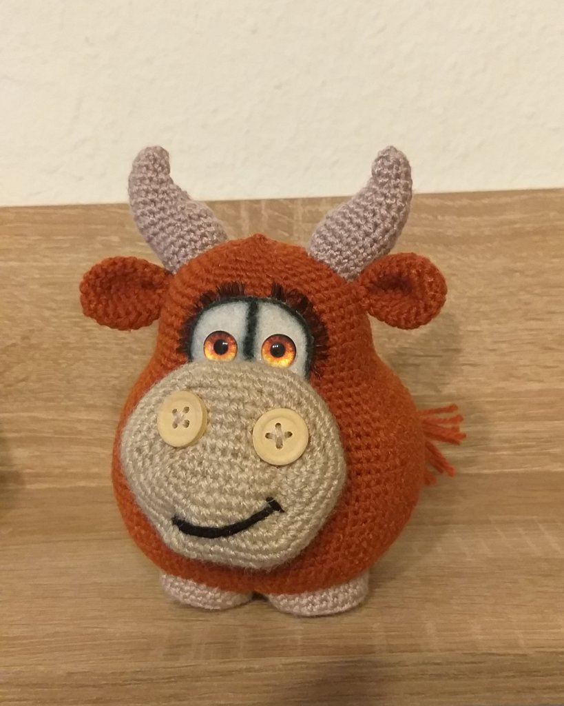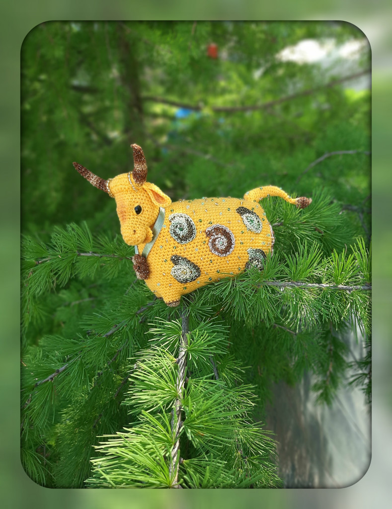 Бычок брелок.<br />Мой авторский МК<br />Размер около 10 см. Связан крючком.