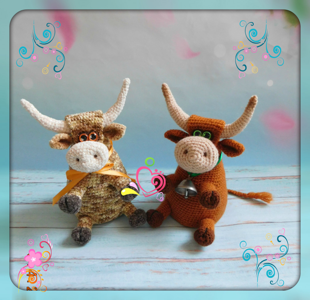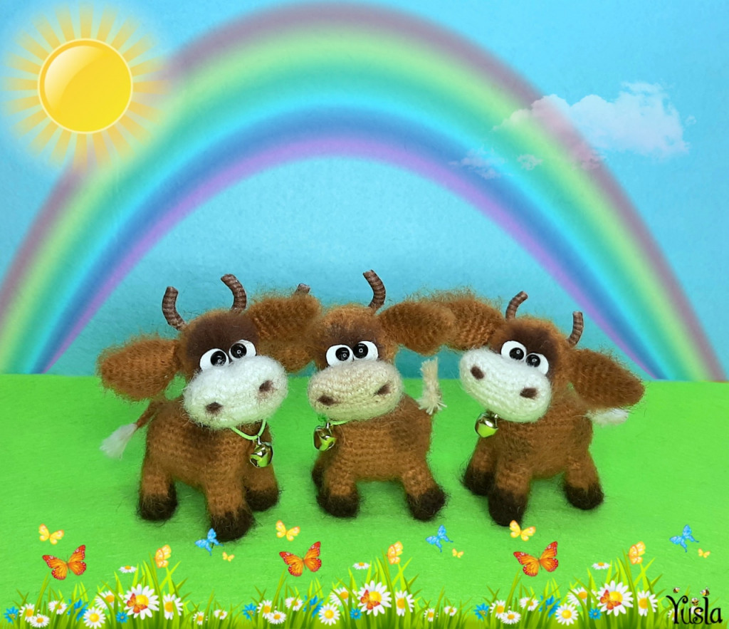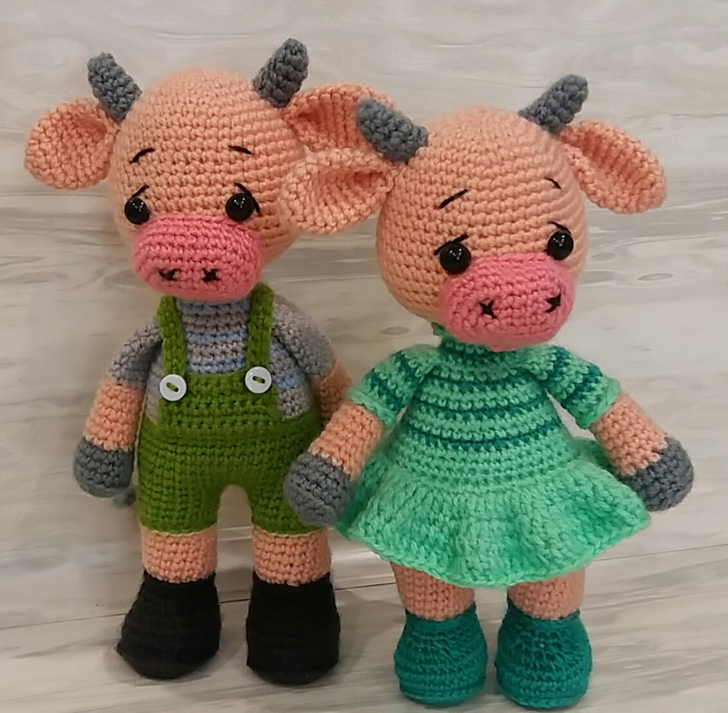 бычок Ярик и корова Ариша, автор @proskuryakova_knits, пряжа Пехорка Детская новинка (100% акрил, 50 гр./200м)