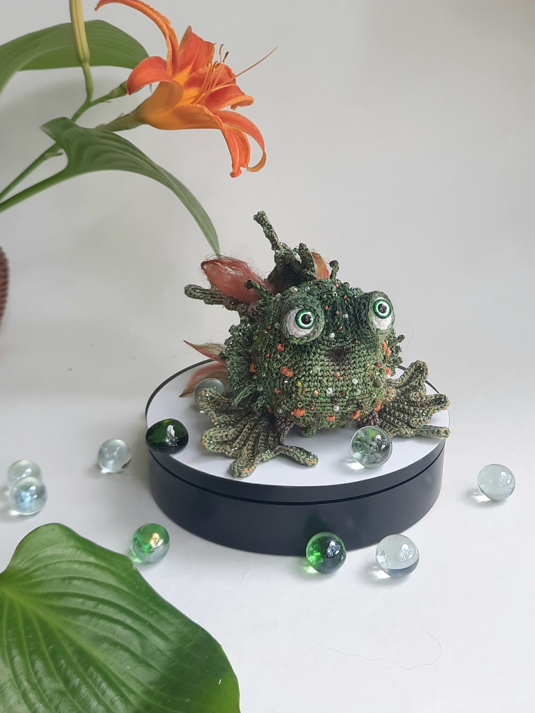 Получилась вот такая лягуха, городская, к бабушке в деревню приехала.